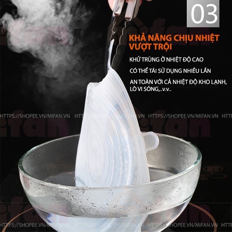 Bộ 6 Miếng Silicone Bọc Thực Phẩm - Nắp đậy màng Silicon bảo quản thức ăn