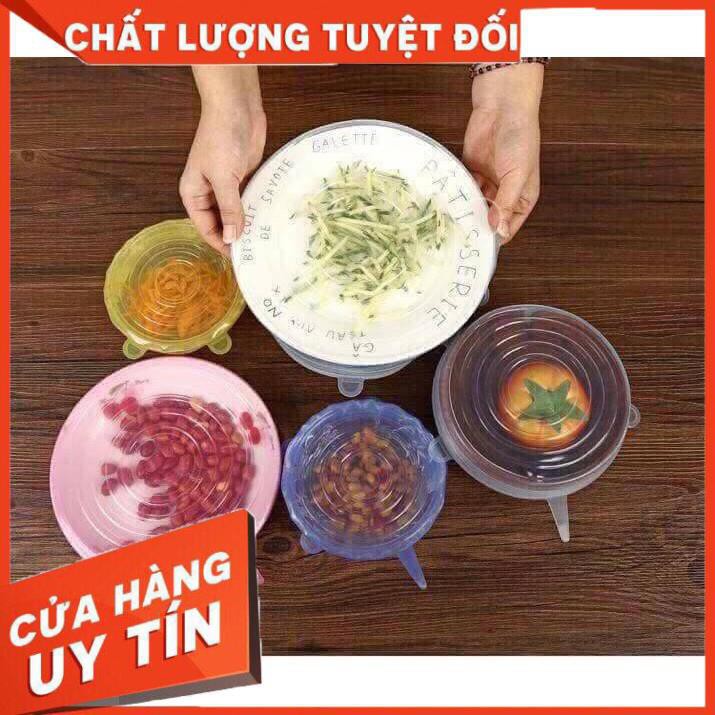 Bộ 6 Miếng Silicone Nắp Đậy Hộp Thức Ăn Bảo Quản Thức Ăn Luôn Sạch SẽNắp Đậy Hộp Thức Ăn
