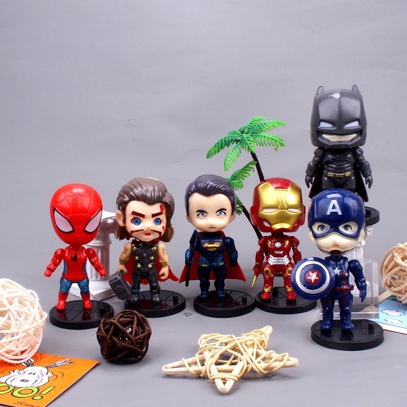 Bộ 6 mô hình siêu anh hùng Marvel Avengers, siêu nhân trang trí bánh kem