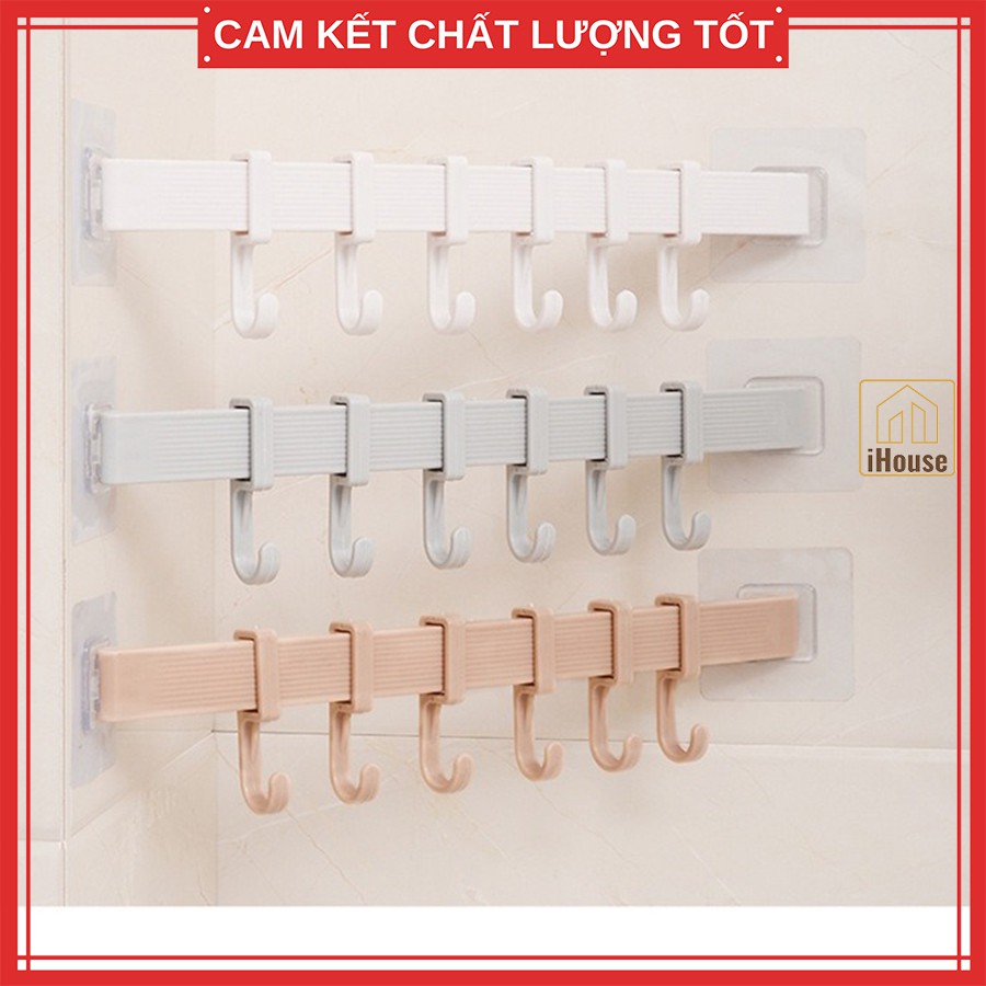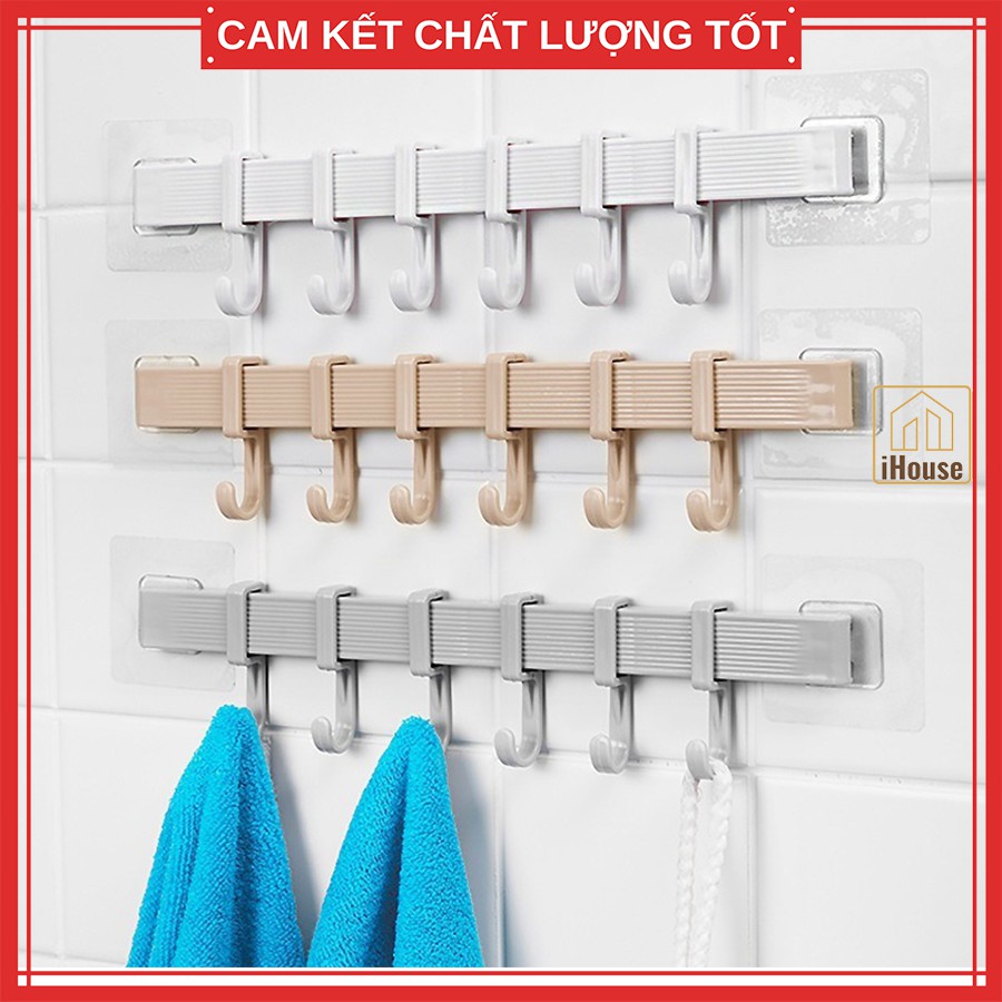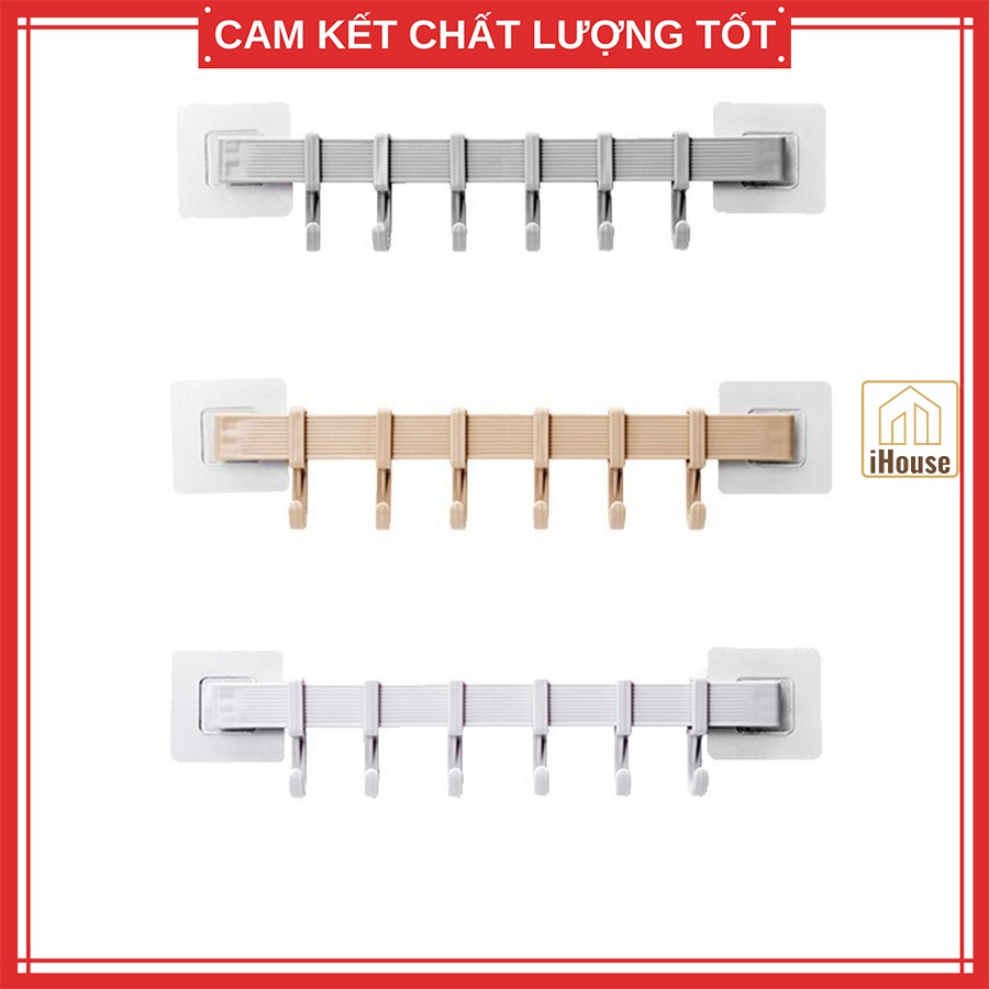 Thanh 6 móc dán tường treo quần áo siêu chắc, Móc dán tường nhà tắm nhà bếp siêu dính không khoan đục iHouse