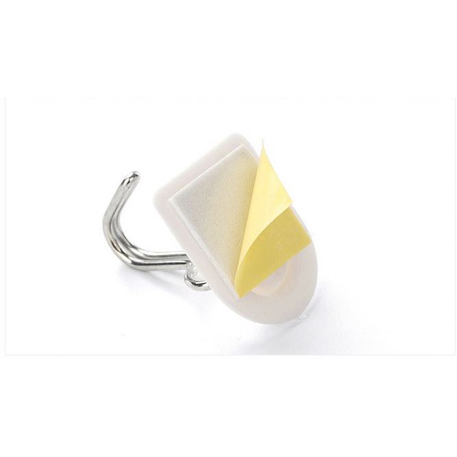 - Dán móc lên tường, lấy tay miết mạnh để miếng dán dính chặt vào tường.