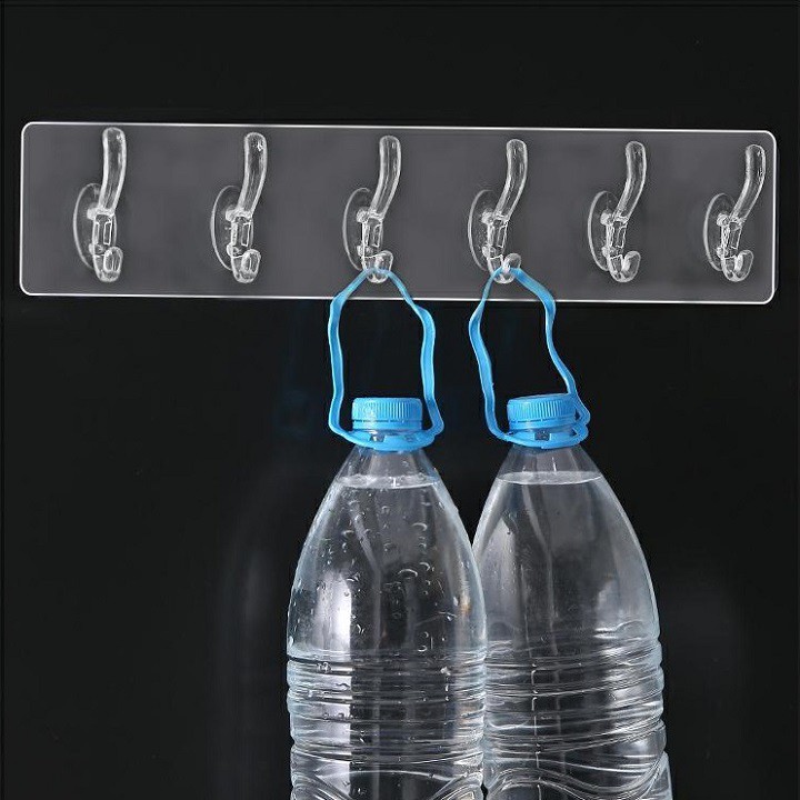 Thanh 6 móc treo đồ dán tường siêu dính chịu lực đa năng trong suốt