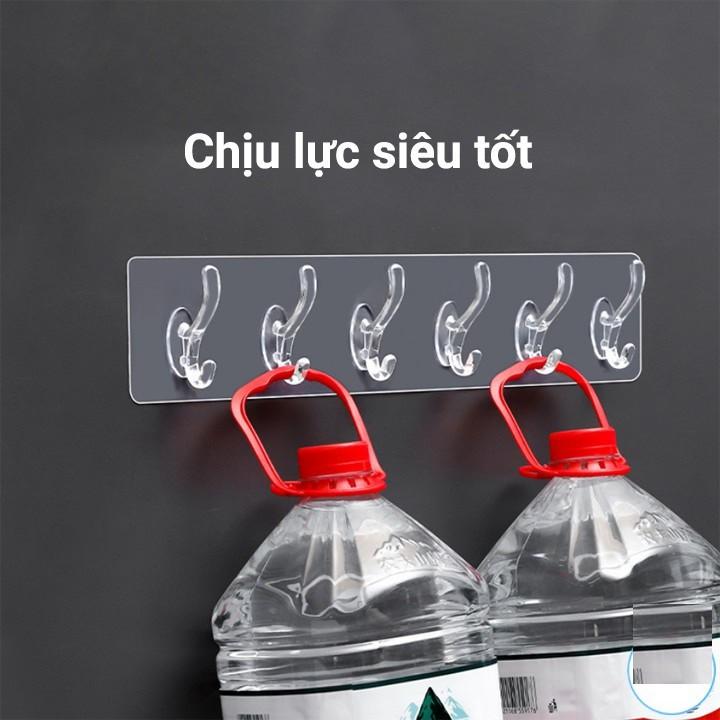 Thanh 6 móc treo đồ dán tường siêu dính chịu lực đa năng trong suốt