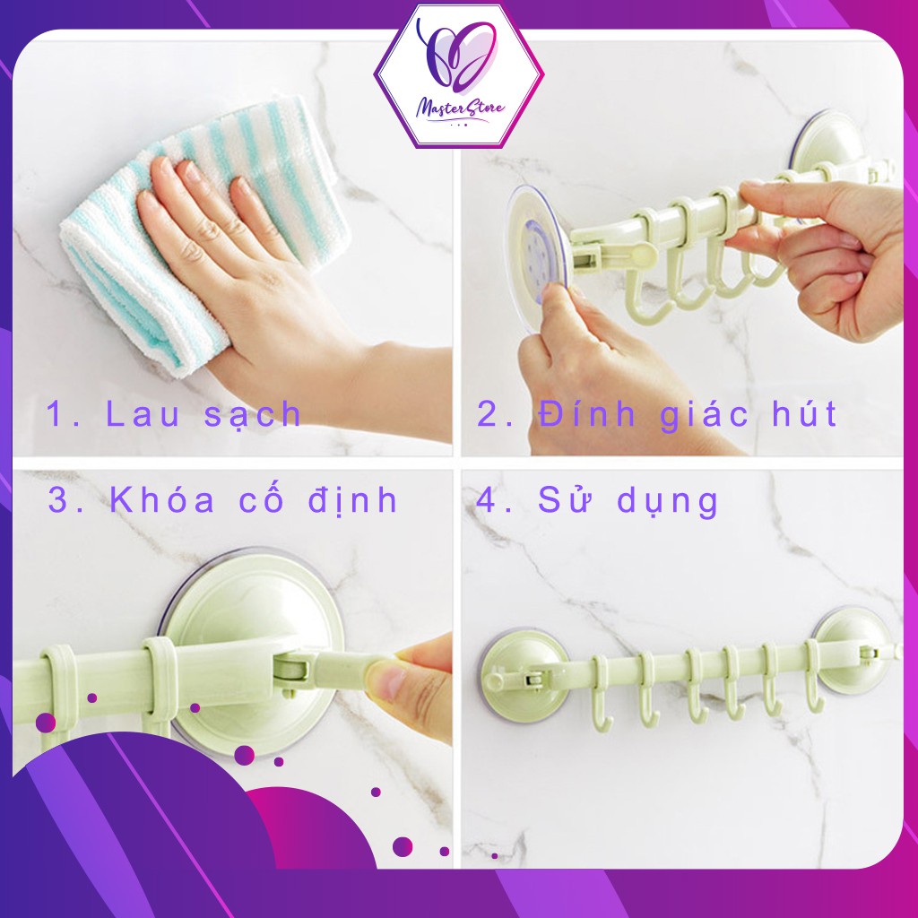 Nhà cửa & Đời sống > Sắp xếp nhà cửa > Móc treo || Thanh 6 móc treo linh động hít chân không nhà tắm, nhà bếp Master Store (loại hít chân không)Còn hàng
