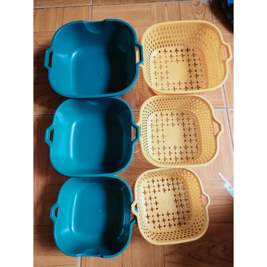 Nhà cửa & Đời sống > Dụng cụ chăm sóc nhà cửa > Chậu, xô & gáo nước || [ 6 món ] bộ rổ và thau nhựa đa năng - set 3 rổ 3 chậu rửa rau củ quả trái cây nhà bếpCòn hàng