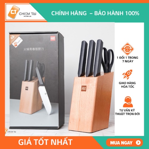 Bộ dao kéo kèm chân đế Huohou là một sản phẩm đến từ thương hiệu Huohou gồm 4 loại dao khác nhau từ dao băm, dao thái lát, dao đầu bếp, dao gọt trái cây, kéo và một chân đế lưu trữ. Tổng thể sản phẩm được bố trí hài hòa, đem lại trải nghiệm sử dụng tuyệt vời dù bạn là dân đầu bếp chuyên nghiệp hoặc là người nội trợ bình thường.