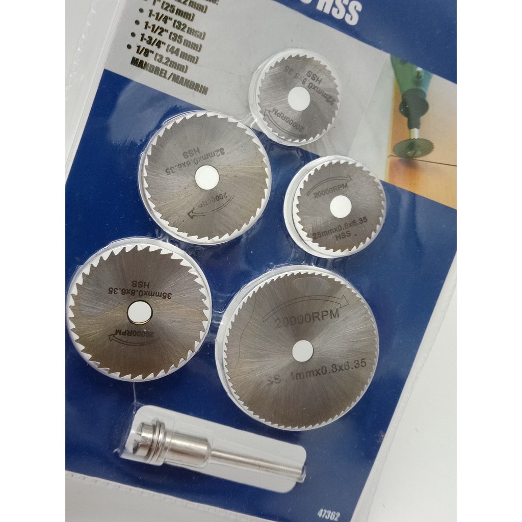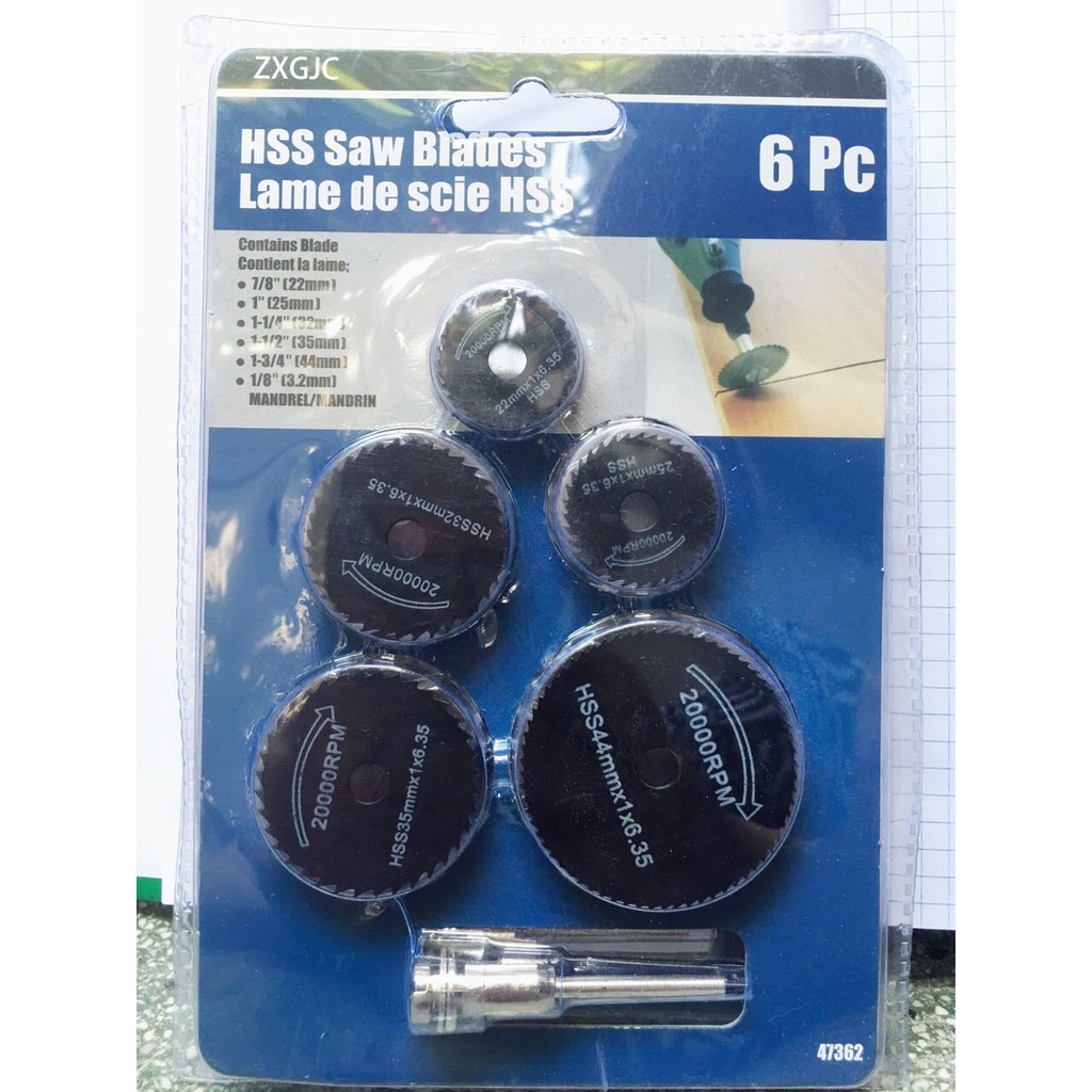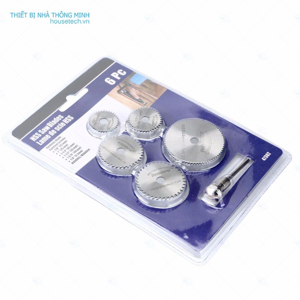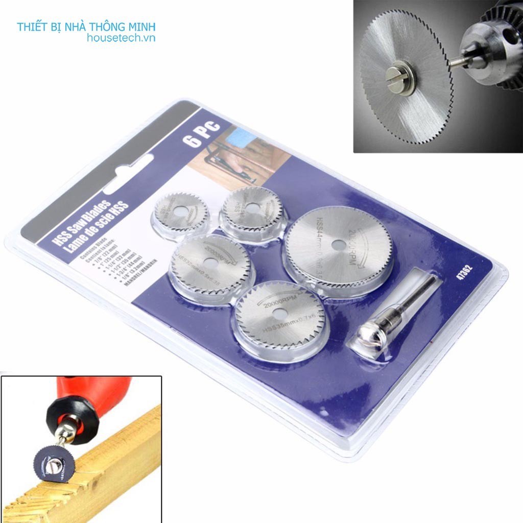 Bộ 6 lưỡi cưa mini- công cụ DIYNếu bạn ham thích mỹ nghệ hoặc DIY thì chắc bạn cần một công cụ cắt nhỏ, với bộ 6 đĩa cưa mini đường kính chỉ từ 22mm đến 50 mm nối với máy khoan, máy mài khắc là bạn đã có thể dùng để cắt gỗ, nhựa, nhôm, mạch in và một số vật liệu có độ cứng không cao khác. Các đĩa cưa mini được làm từ thép gió HSS và có thê chịu được tốc độ vòng quay đến 20000 vòng phút.