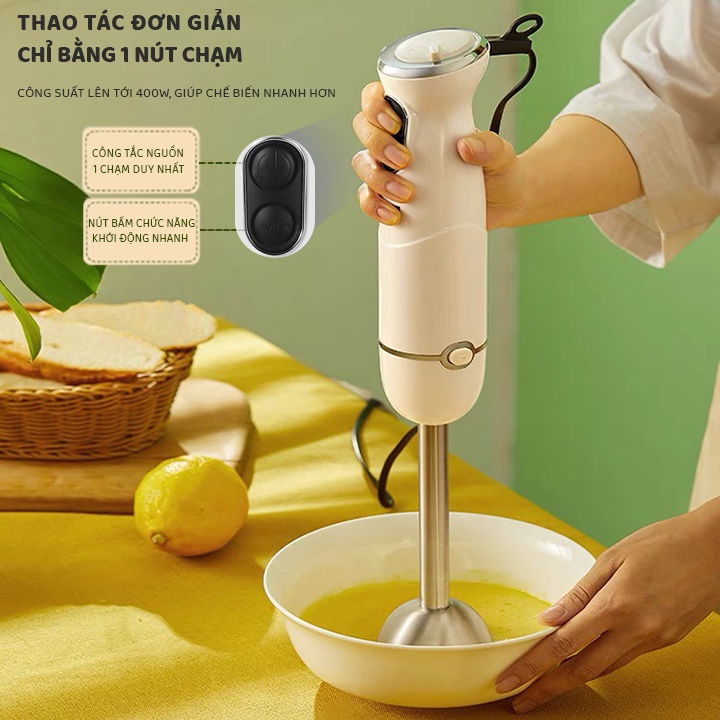 ✔ Giúp mẹ có thể cầm gọn trên tay, xay trực tiếp trong nồi, thố, cốc với những món ăn như cháo, soup ăn dặm cho con hay xay sinh tố rất dễ dàng, giữ lại 100% dưỡng chất.