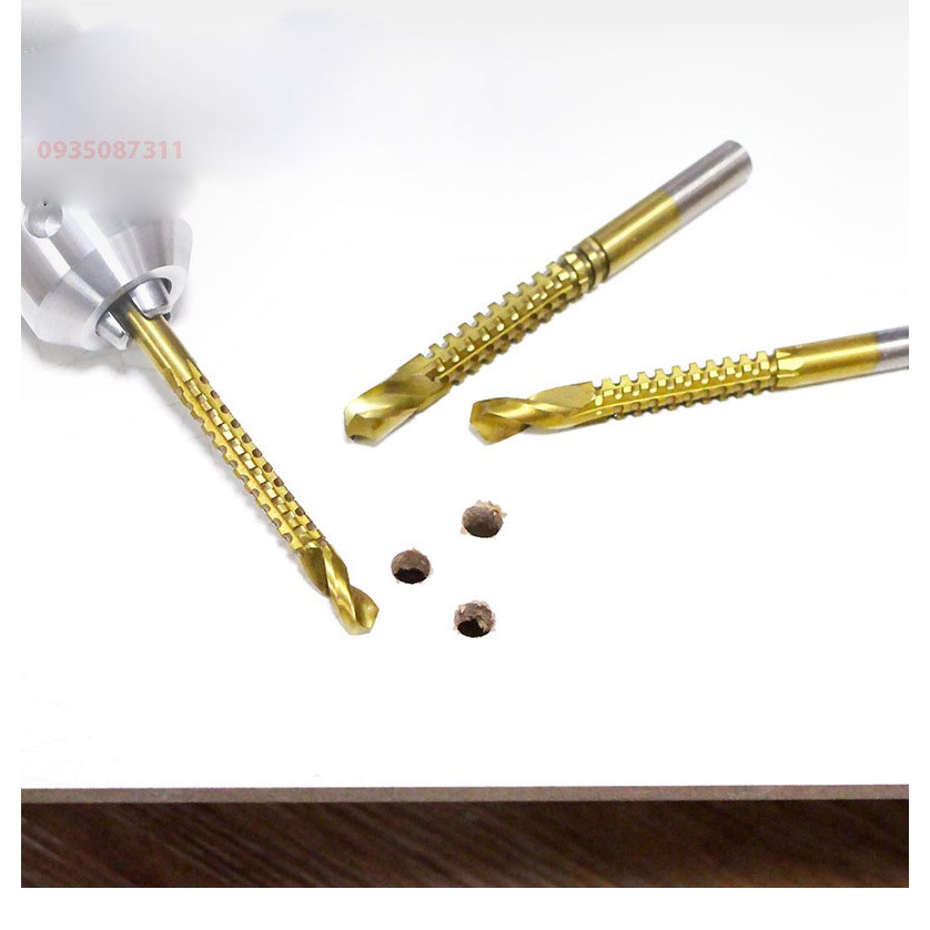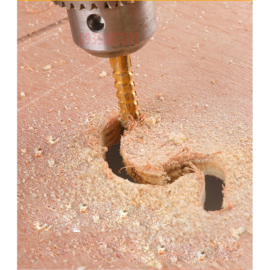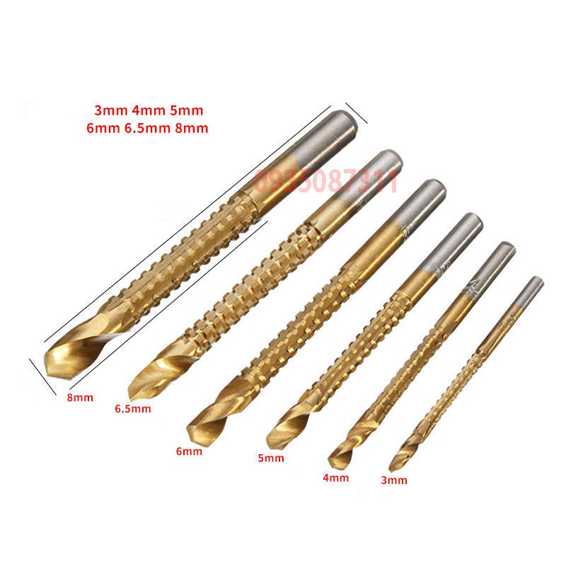 Bộ 6 mũi khoan cưa gỗ,nhựa, mica, nhôm, đồng, sắt mỏng 3-8mm phủ titan