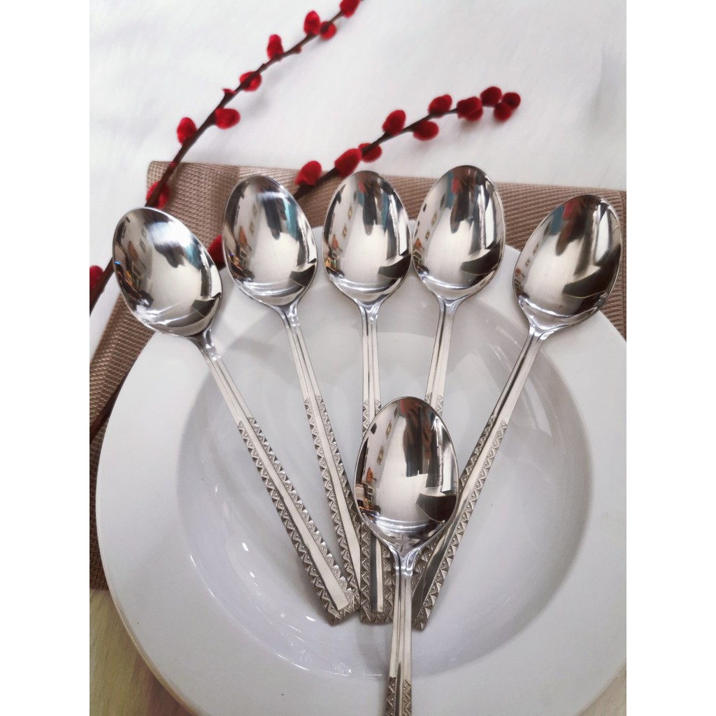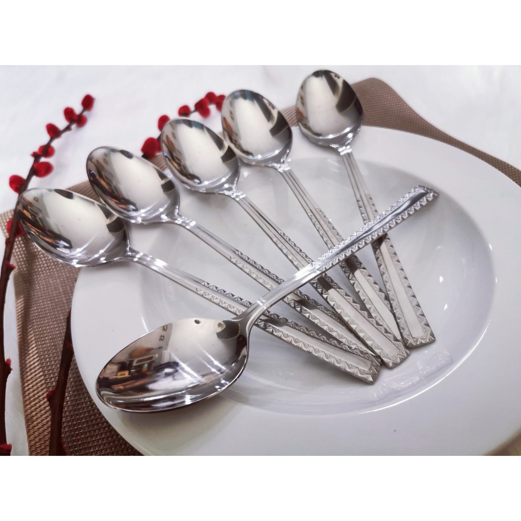 BỘ 6 MUỖNG ĂN INOX 304 KIỂU DÁNG CAROđược làm bằng chất liệu thép không gỉ 304 dày dặn, sáng bóng, không bị gỉ, an toàn cho sức khoẻ người sử dụng.