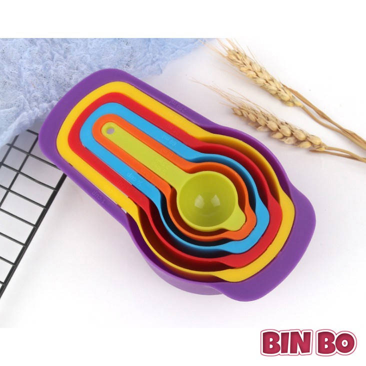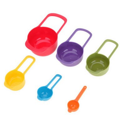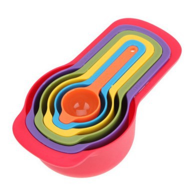 Công dụng: Bộ thìa đong với nhiều màu sắc rực rỡ được làm bằng nhựa nguyên chất, an toàn, đo theo đơn vị ml, gam Bộ dụng cụ sẽ giúp người dùng dễ dàng đong đếm những nguyên liệu nấu ăn và làm bánh như sữa, bơ, cream, bột