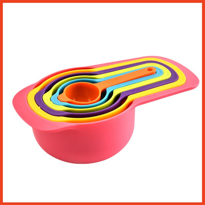 Bộ 6 muỗng đo lường đủ màuGồm: 1/2 tbsb + 1 tbsp + 1/4 cup + 1/3 cup + 1/2 cup + 1 cup