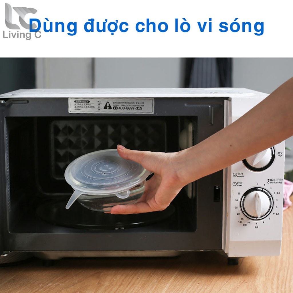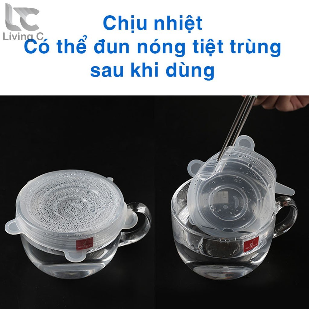 Bộ 6 nắp bọc thực phẩm , 6 miếng Silicon co dãn chịu nhiệt đậy chén bát đa năng Living