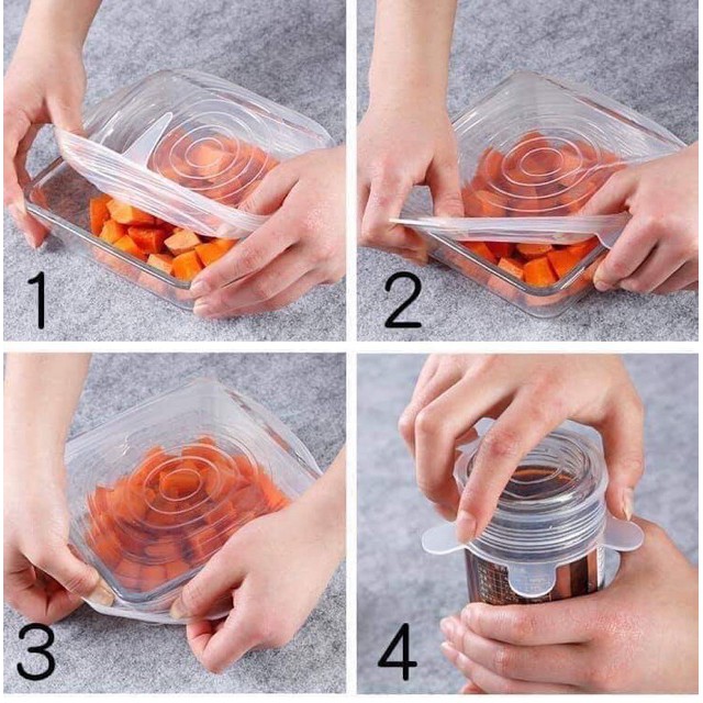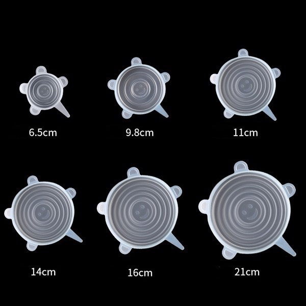 Set 6 nắp với 6 kích thước từ nhỏ đến lớn cùng khả năng co giãn hoàn hảo. Kích thước thông thường giúp bọc kín rất nhiều các loại hình dạng và kích thước hộp, bát. Khả năng chịu nhiệt cao từ -50 độ C đến 250 độ C có thể được sử dụng trong tủ lạnh, lò vi sóng, tủ đông.Có thể nói đây là bộ nắp bảo quản thực phẩm ưu việt nhất hiện nay. Một giải pháp tuyệt vời nhằm thay thế hoàn toàn túi ni lông và màng bọc thực phẩm.