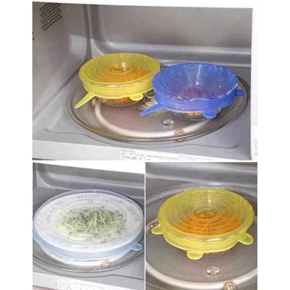 Bịt nắp bát silicon 6 chi tiết 😍😍🎊Bộ 6 nắp silicon đậy bát đĩa, bọc thực phẩm dùng được trong lò vi sóng.