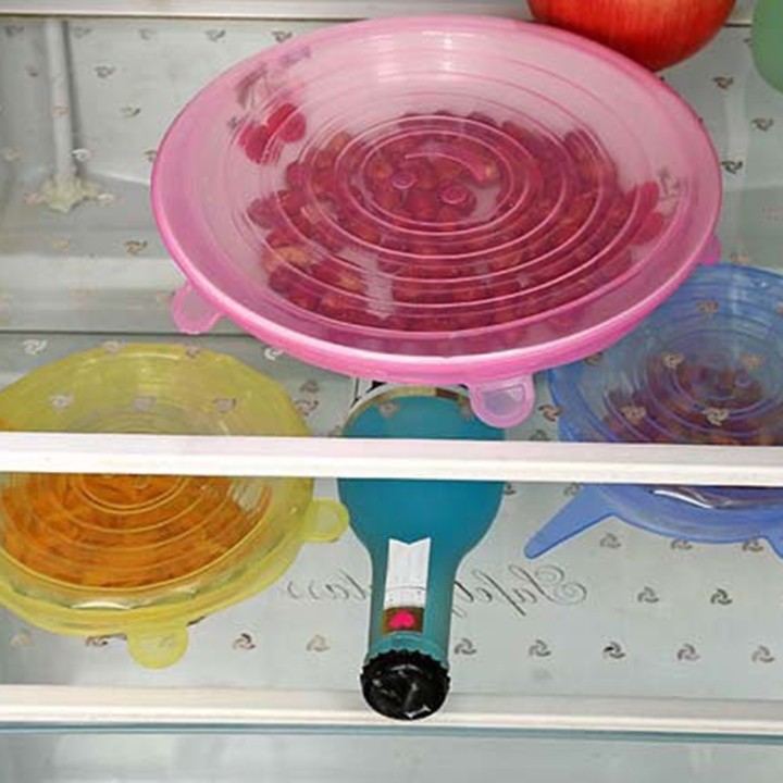 Bộ 6 nắp đậy silicon co giãn thay thế màng bọc thực phẩm
