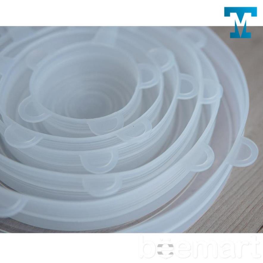Bộ 6 nắp đậy silicon thay thế màng bọc thực phẩm( trắng,xanh và hồng)