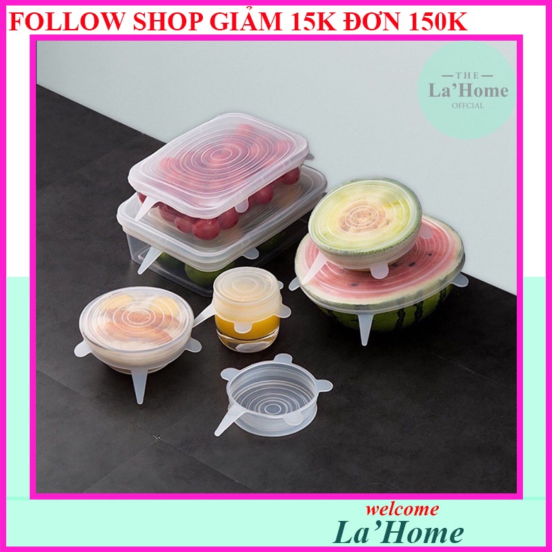 Bộ 6 nắp đậy thực phẩm La'Home silicone, Màng bọc thực phẩm giữ thực phẩm tươi lâu, không chứa BPA