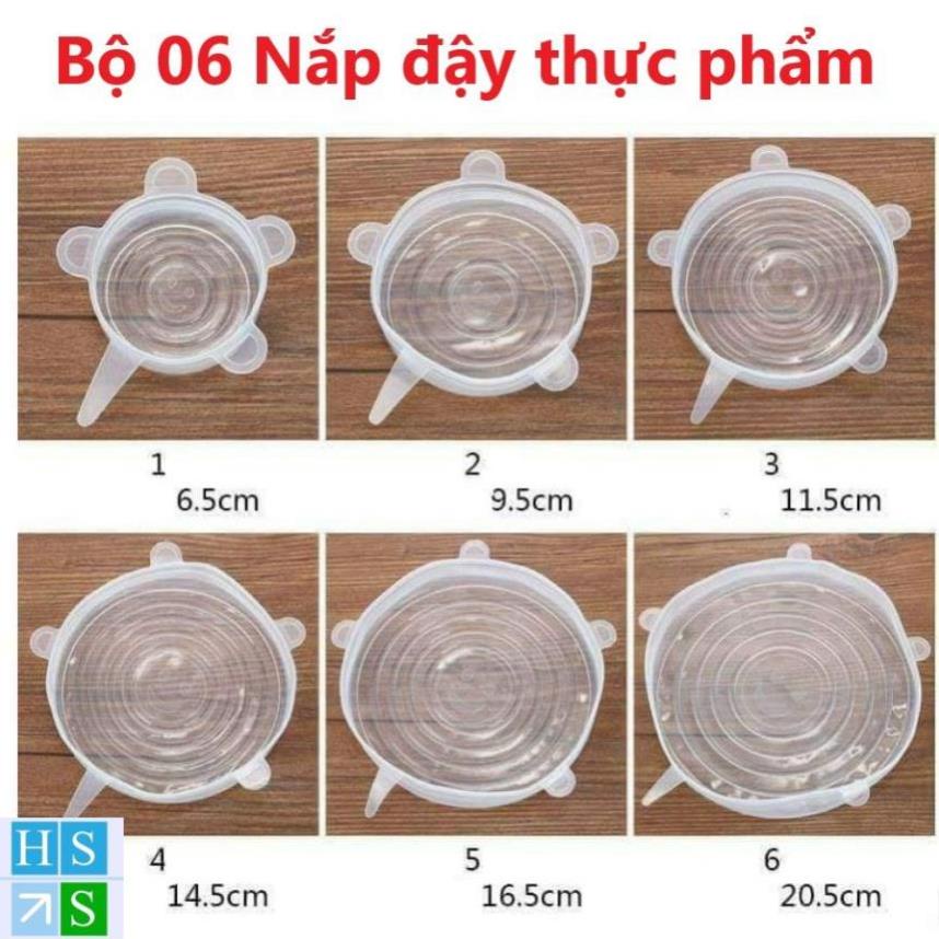 Bộ 6 nắp đậy thực phẩm silicon mềm dẻo đa năng, an toàn vệ sinh - HS Shop Thủ Đức