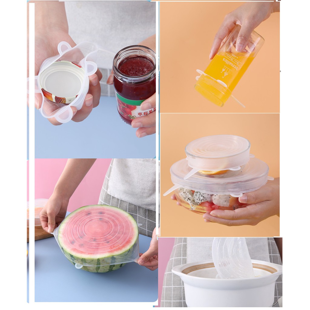 -1 set gồm 6 nắp kích thước từ bé đến lớn, đảm đảo có thể đậy được từ bát nhỏ đến bát lớn, cực kín, cực khít.