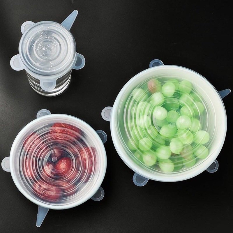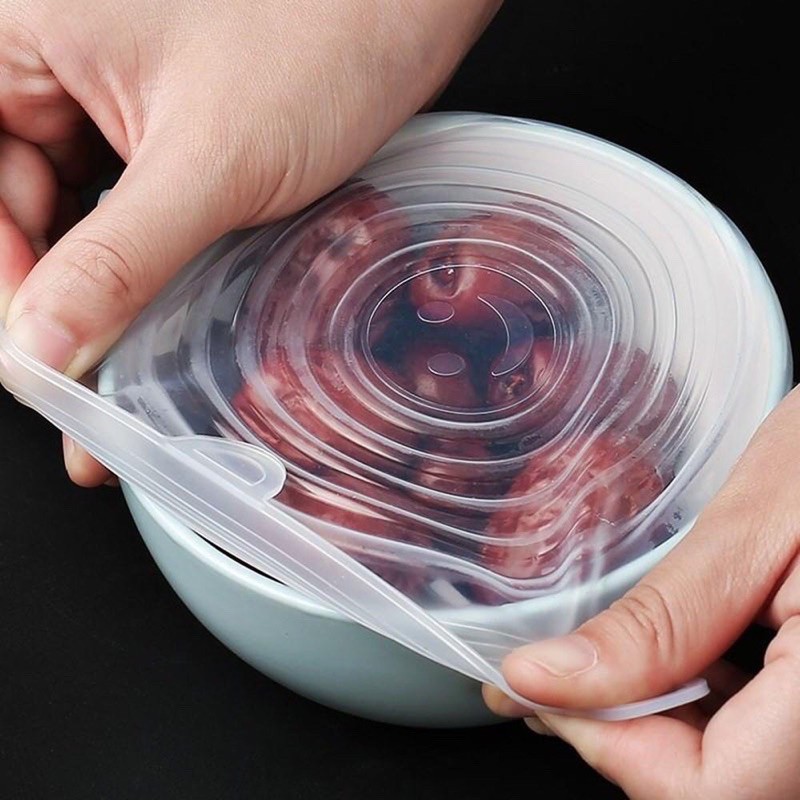 Bộ 6 Nắp Silicon Co Giãn Bảo Vệ Thực Phẩm - Che Đậy Đồ Ăn Hoa Quả - Màng Bọc Thực Phẩm Silicon Tái Sử Dụng Được