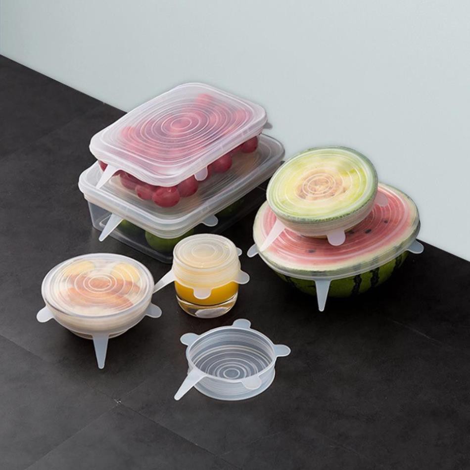 love love loveBộ 6 Nắp Silicon Co Giãn Bảo Vệ Thực Phẩm - Che Đậy Đồ Ăn Hoa Quả - Màng Bọc Thực Phẩm Silicon Tái Sử Dụng Được