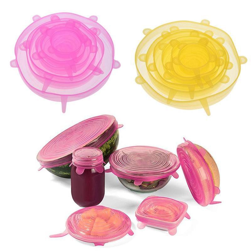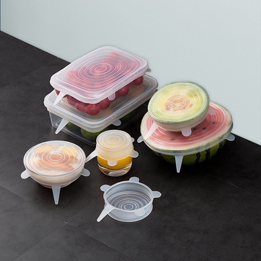 Bộ 6 Nắp Silicon Co Giãn Bảo Vệ Thực Phẩm - Che Đậy Đồ Ăn Hoa Quả - Màng Bọc Thực Phẩm Silicon Tái Sử Dụng Được- Eco-Friendly, không độc hại cho cơ thể con người