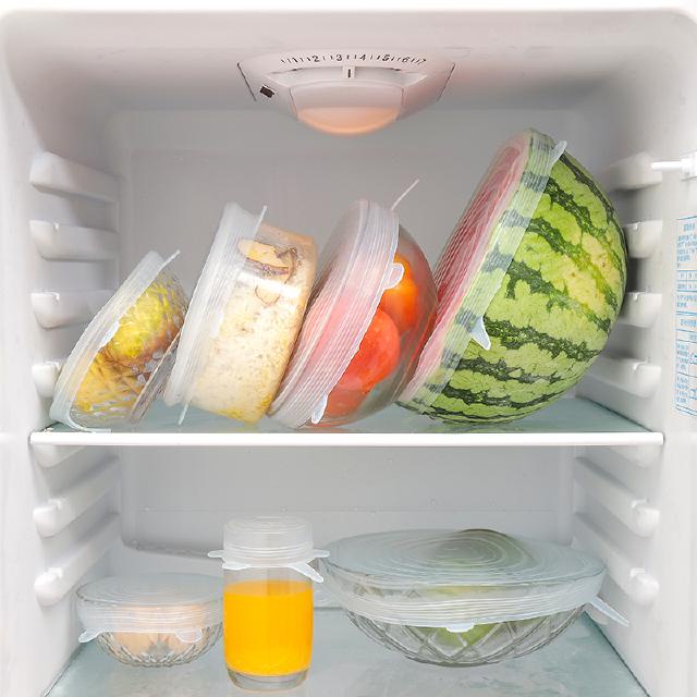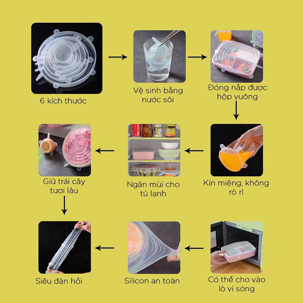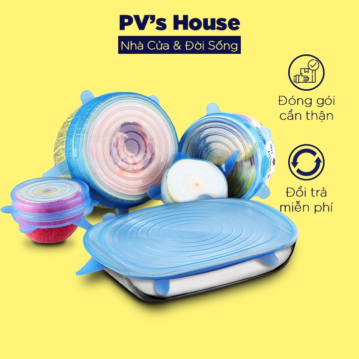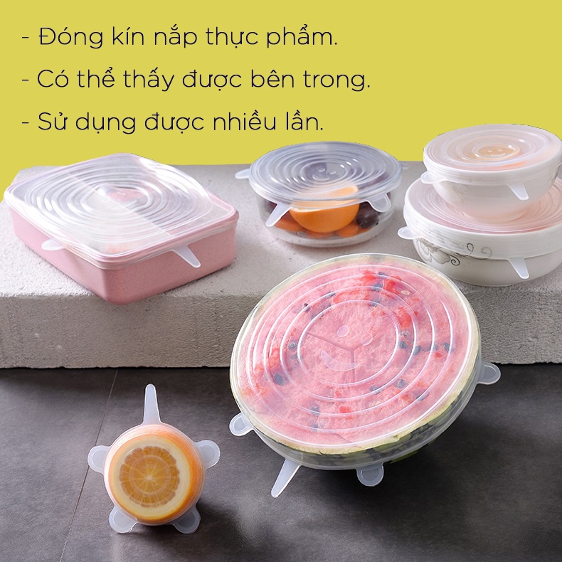 Bộ 6 nắp silicon đậy thực phẩm dùng để thay thế màng bọc thực phẩm, sử dụng được nhiều lần