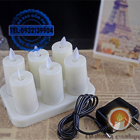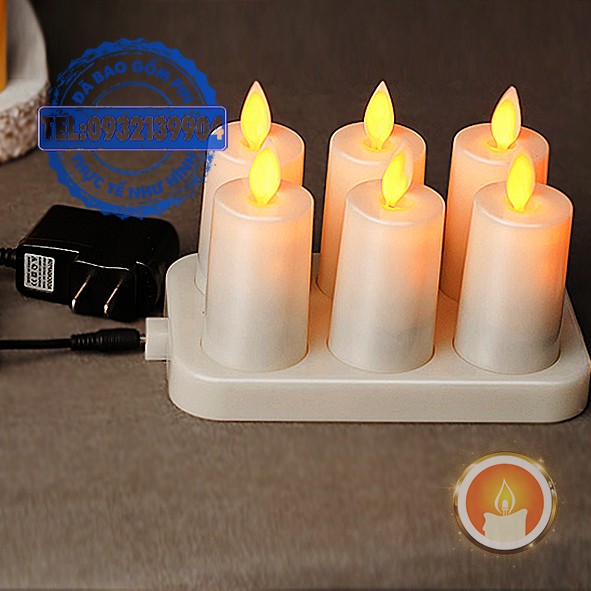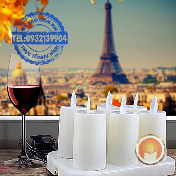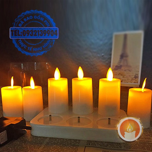 Bộ 6 nến điện tử sạc pin tim lắc [KÈM BỘ SẠC]
