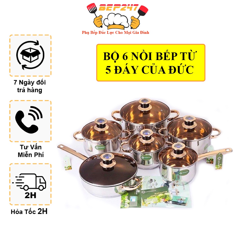 *** Bộ nồi Đức cao cấp có 6 món 12 chi tiết* Set 6 món -12 chi tiết bao gồm: