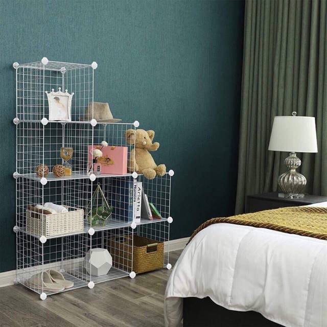 Tủ ghép lưới sắt đa năng. Được làm từ các tấm lưới sắt thép phun sơn tĩnh điện chống rỉ, mỗi ô lắp lên chịu tối đa 20kg. Để trưng bày sách vở, quần áo, đồ chơi, túi sách, phụ kiện.....Kích thước 1 ô: 37x37x37cm( cả chốt )