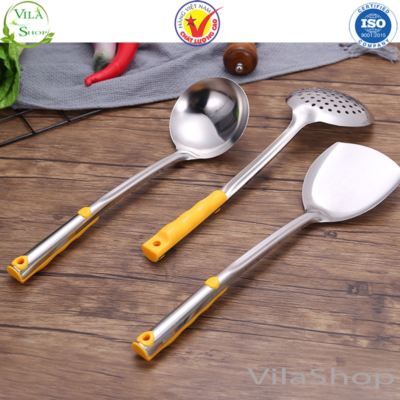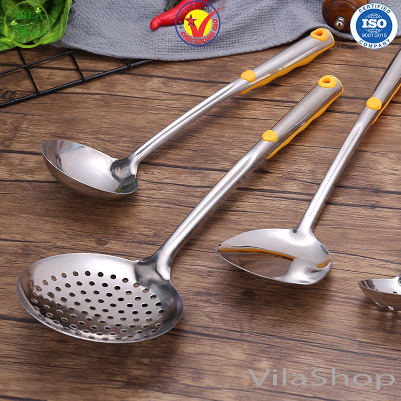 [ 6 Phân Loại ] Muôi Inox, Bộ Muỗng Inox Cán Vàng Đa Chức Năng ( Muôi Thủng - Muôi Canh - Xẻng Sào - Xẻng Thủng )