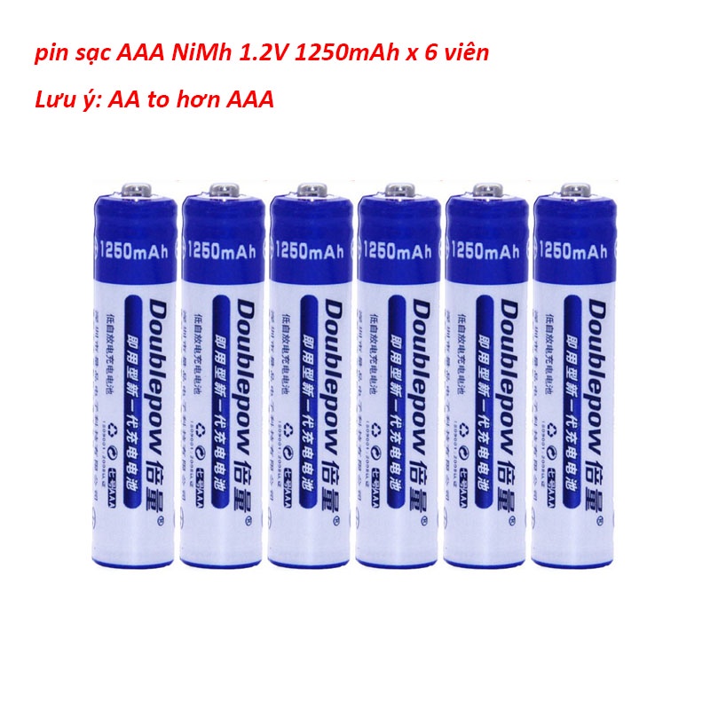 Bộ 6 pin sạc Ni-Mh 1.2V AAA Doublepow 1250mAh Cam Kết Dung Lượng Thật