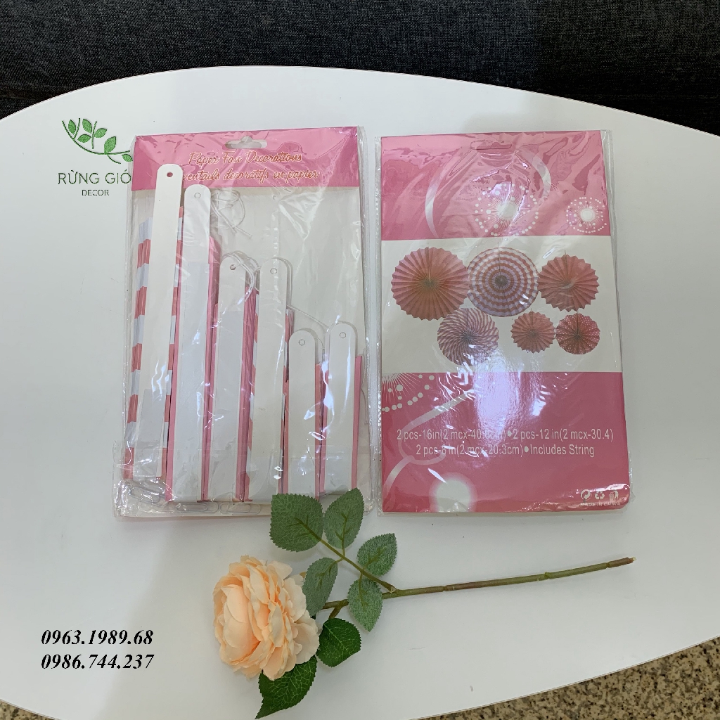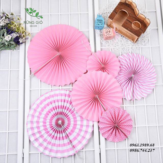 💕Bộ 6 Quạt Giấy Màu Hồng Trang Trí Sinh Nhật Cho Bé Yêu 💕🎀Bộ quạt bao gồm:
