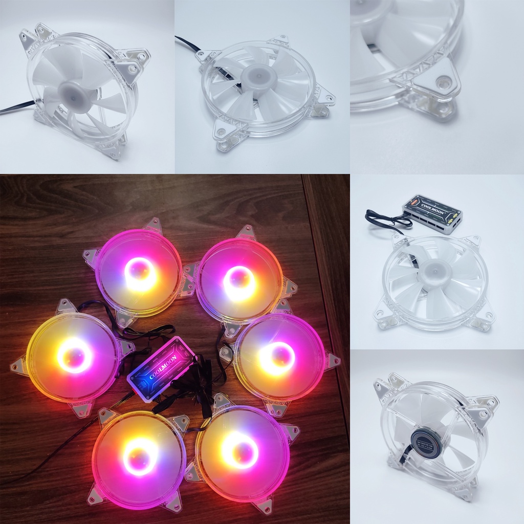 Máy tính & Laptop > Linh Kiện Máy Tính > Quạt và Tản Nhiệt || Bộ 6 Quạt làm mát máy tính, Fan Case, Fan led VIP ARGB Led sáng tâm, viền trong suốt, đồng bộ Hub Quạt CoolmoonCòn hàng