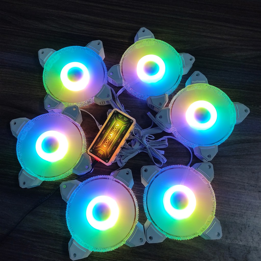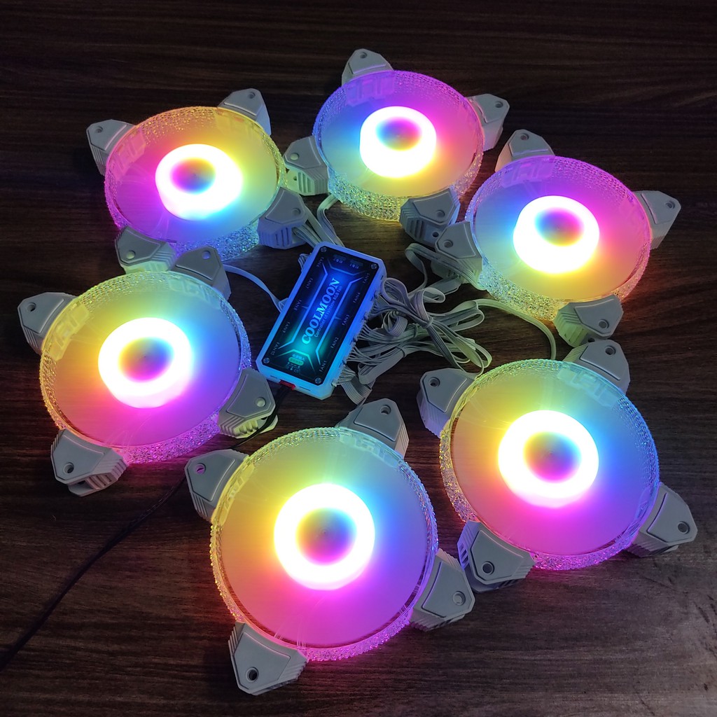 Máy tính & Laptop > Linh Kiện Máy Tính > Quạt và Tản Nhiệt || Bộ 6 quạt tản nhiệt, Fan Led, Fan case Diamond kim cương SRHX RGB đồng bộ màu Hub Quạt CoolmoonCòn hàng