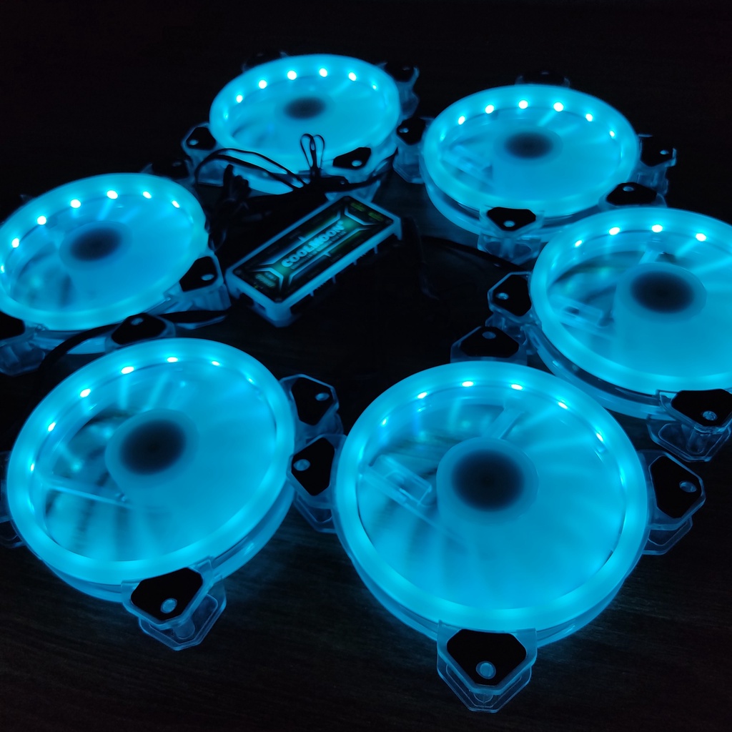 Bộ 6 Quạt Tản Nhiệt K5 Kích Thước 12cm Fan Led RGB Đồng Bộ Màu Bub Quạt CoolmoonTích hợp đèn led tại viền quạt với độ sáng cao hắt ánh sáng vào tâm quạt.