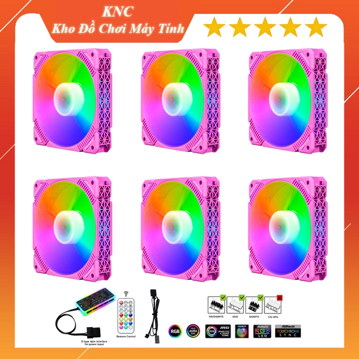 Máy tính & Laptop > Linh Kiện Máy Tính > Quạt và Tản Nhiệt || Bộ 6 Quạt Tản Nhiệt Pink P1 12cm Fan Led RGB Đồng Bộ Màu Hub Coolmoon, Hub Sync MainboardCòn hàng