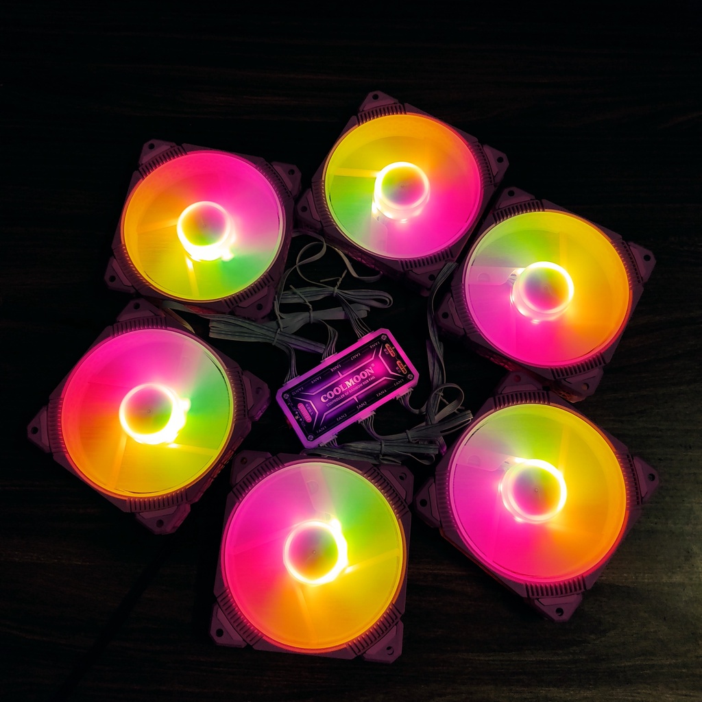Giới thiệu Bộ 6 Quạt Tản Nhiệt Pink P1 12cm Fan Led RGB Đồng Bộ Màu Hub Coolmoon, Hub Sync Mainboard