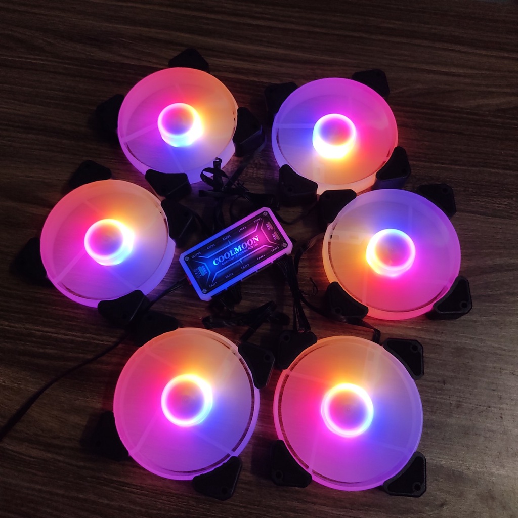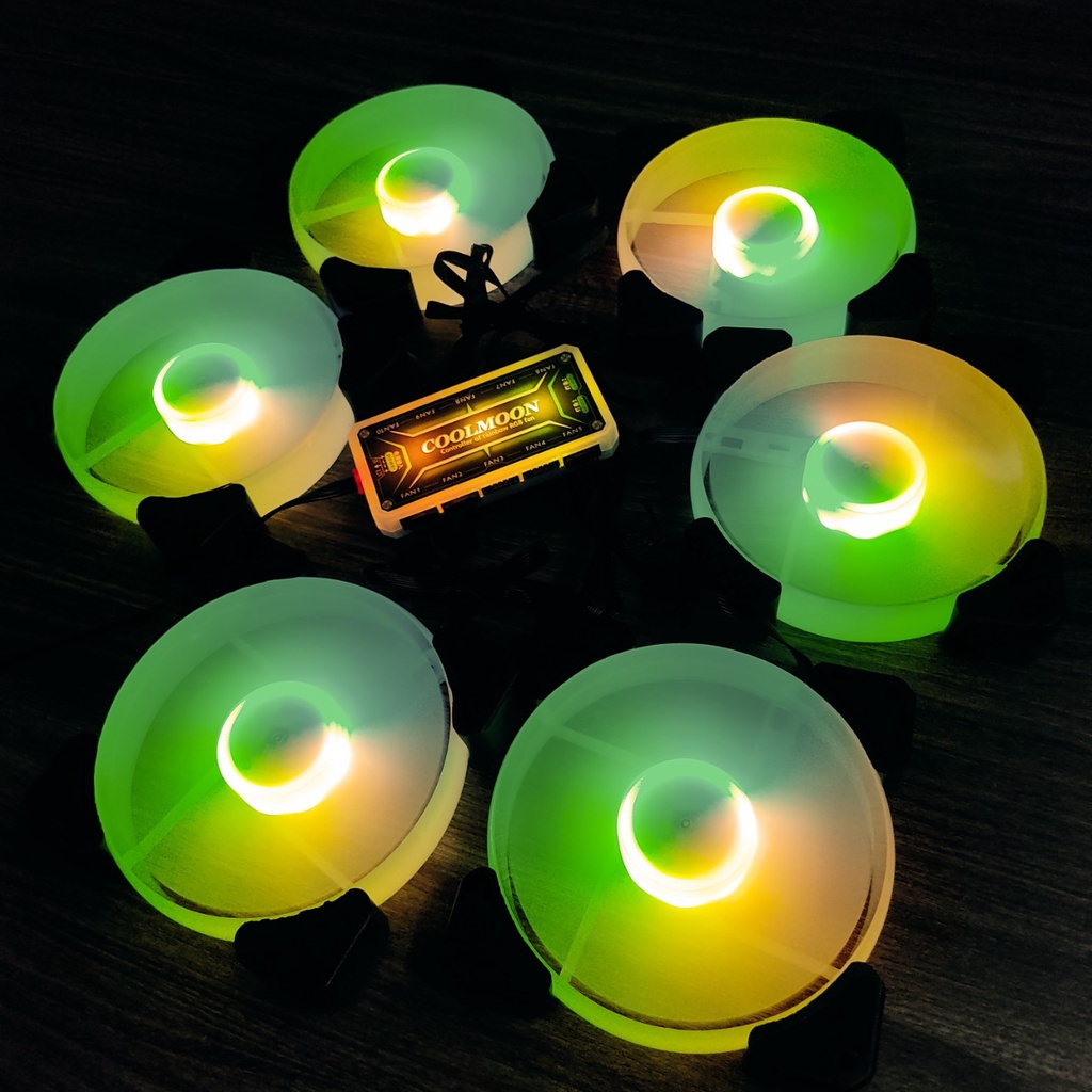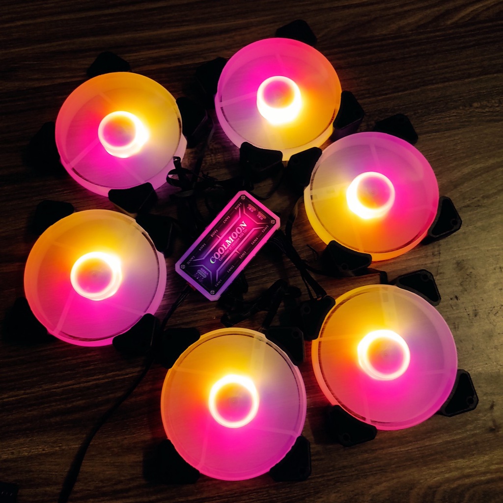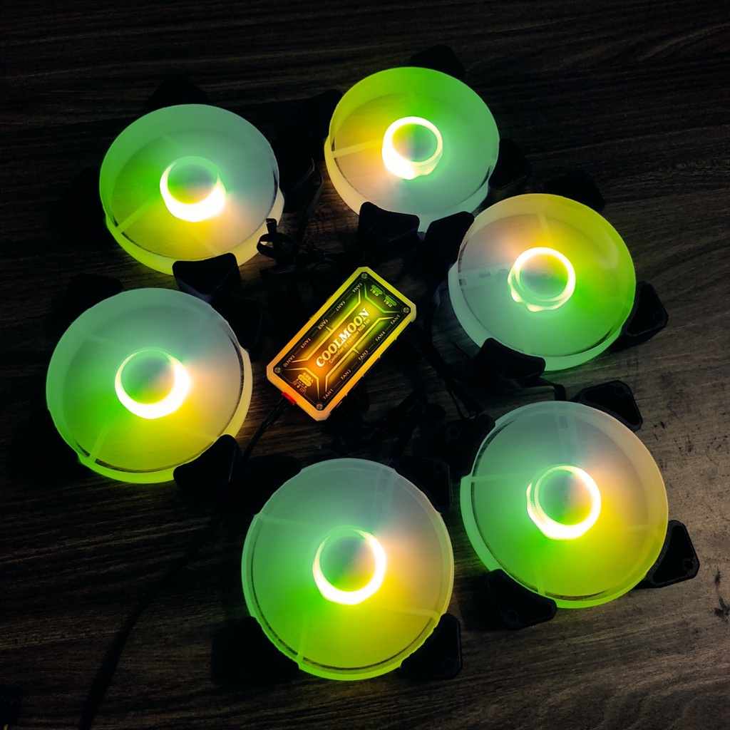 Máy tính & Laptop > Linh Kiện Máy Tính > Quạt và Tản Nhiệt || Bộ 6 Quạt Tản Nhiệt Y1 12cm Sáng Tâm Fan Led RGB Đồng Bộ Màu Hub Coolmoon, Hub Sync MainboardCòn hàng