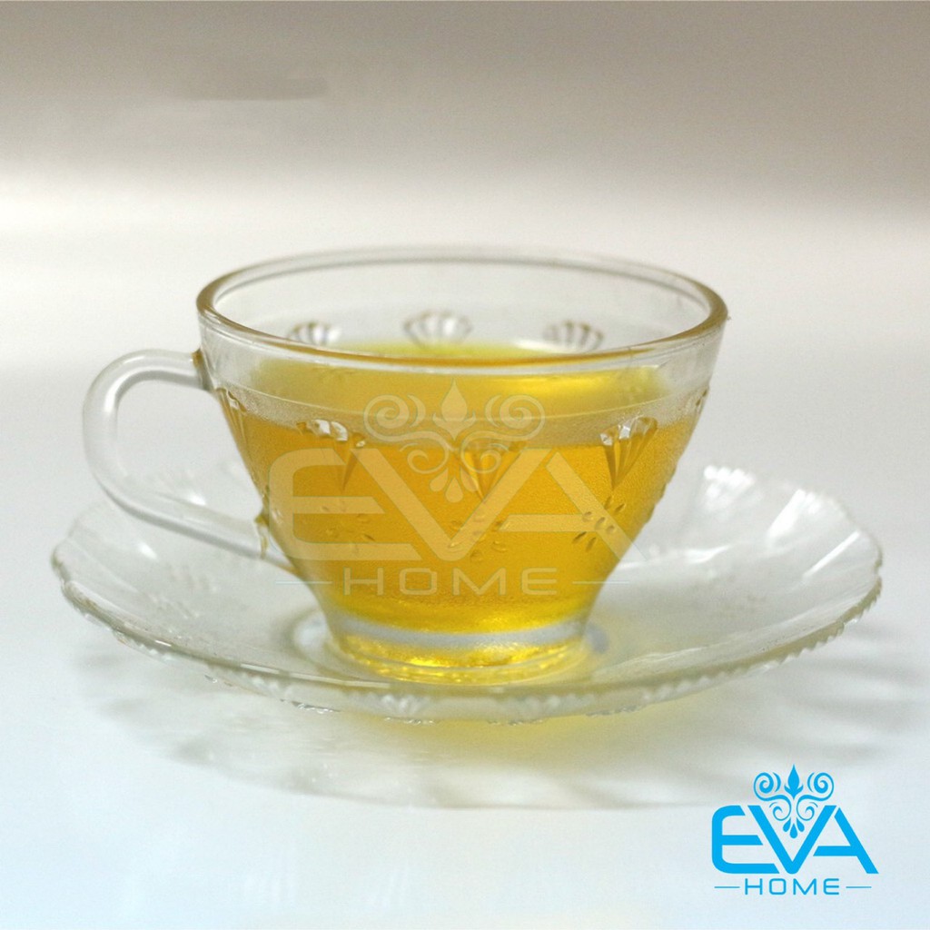 - Bộ sản phẩm gồm : 6 tách trà thuỷ tinh mờ hoa văn nổi , 6 đĩa cao cấp