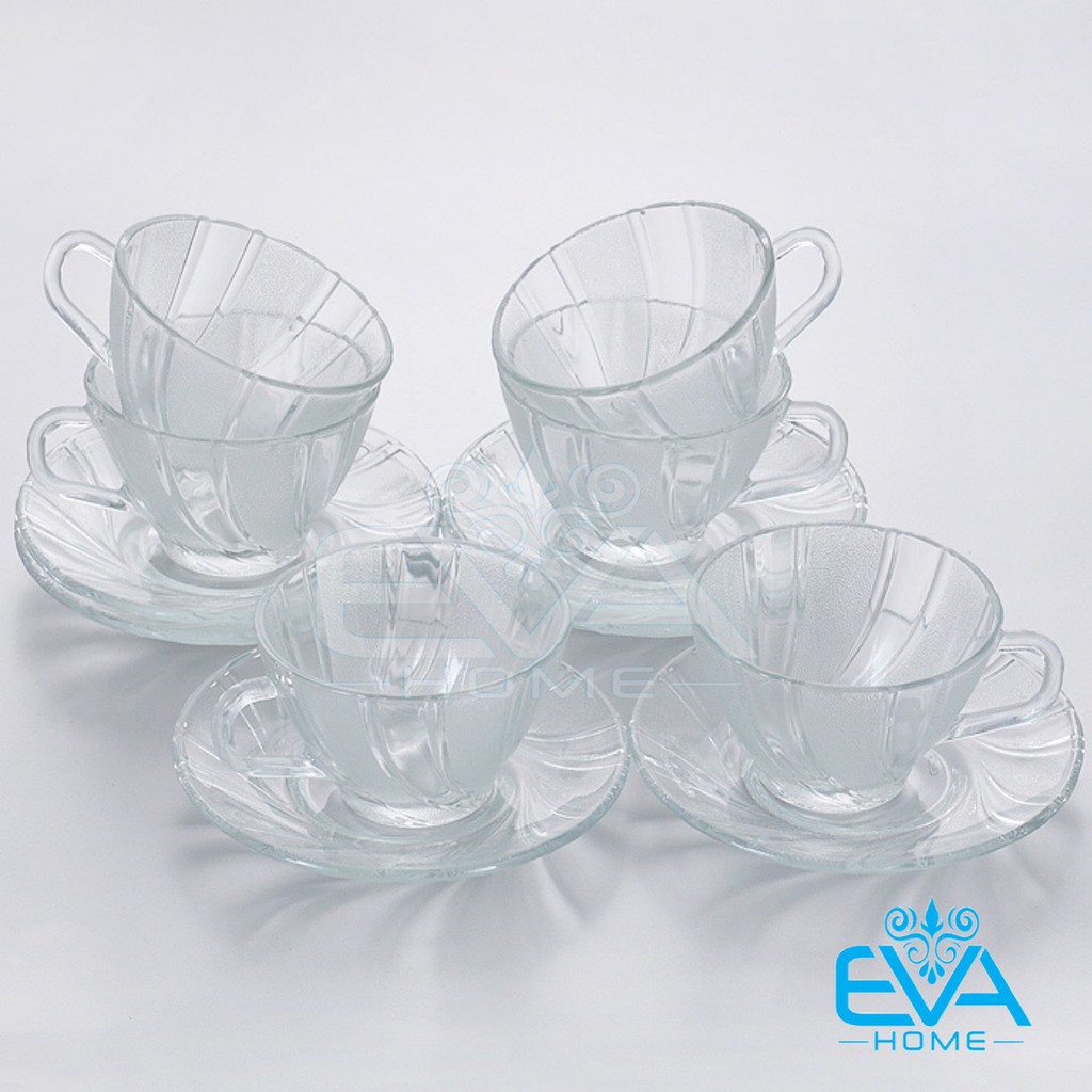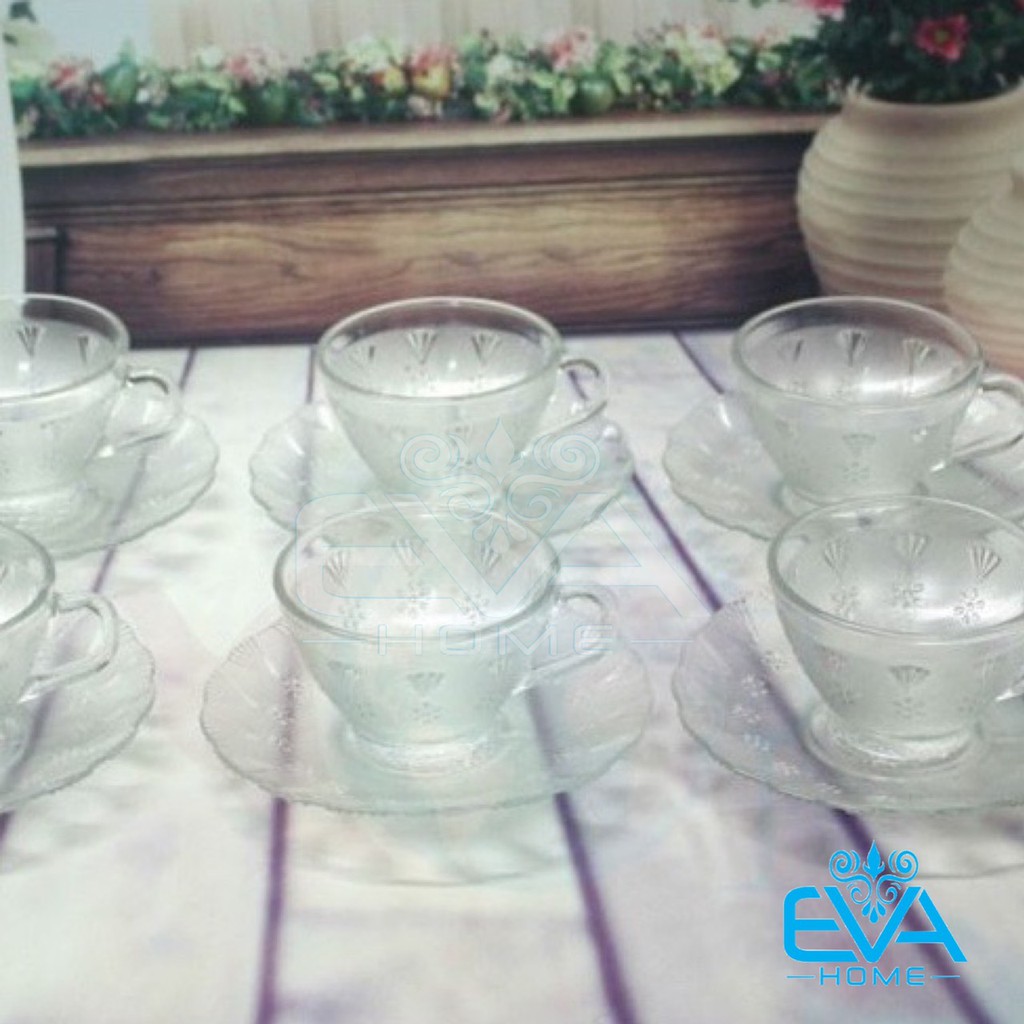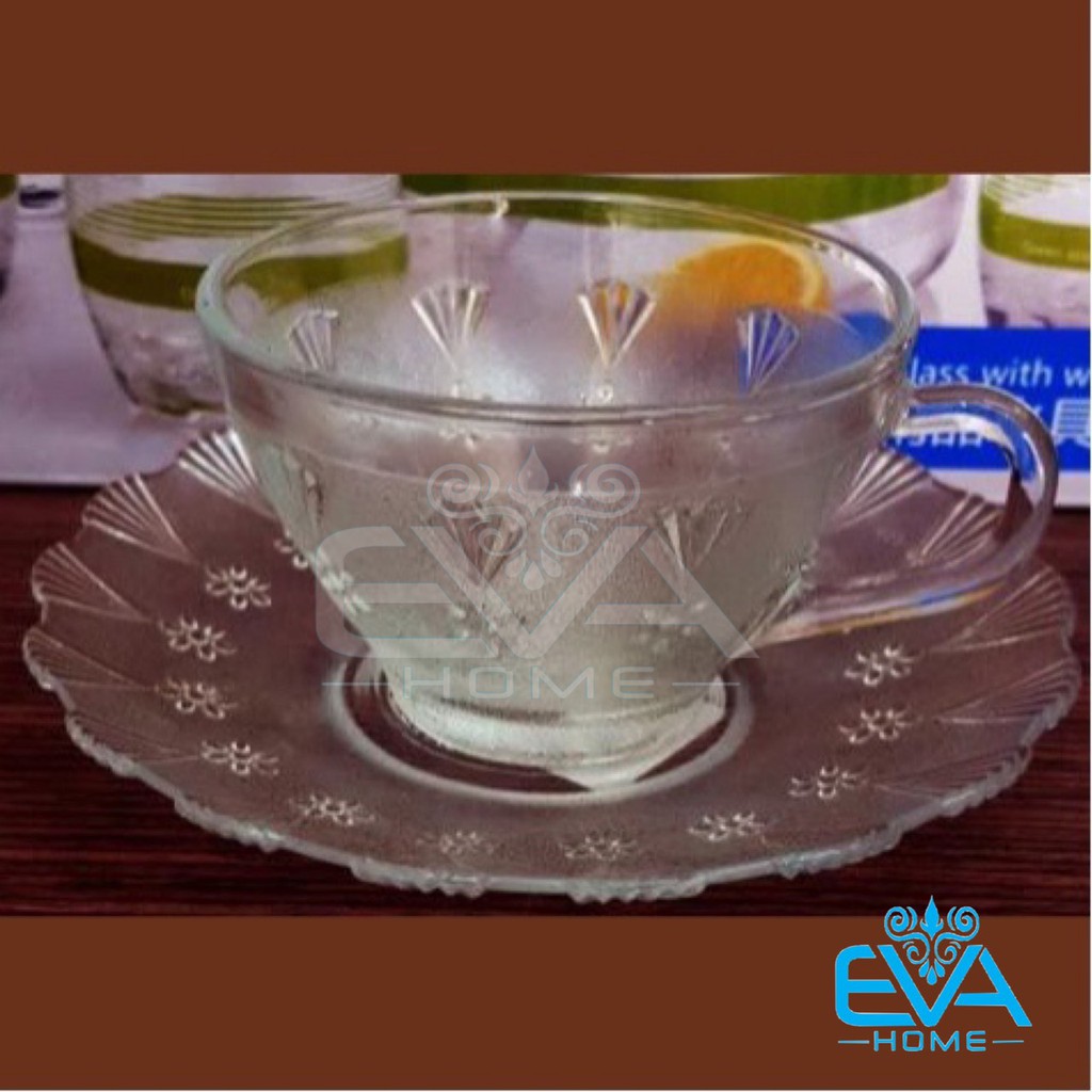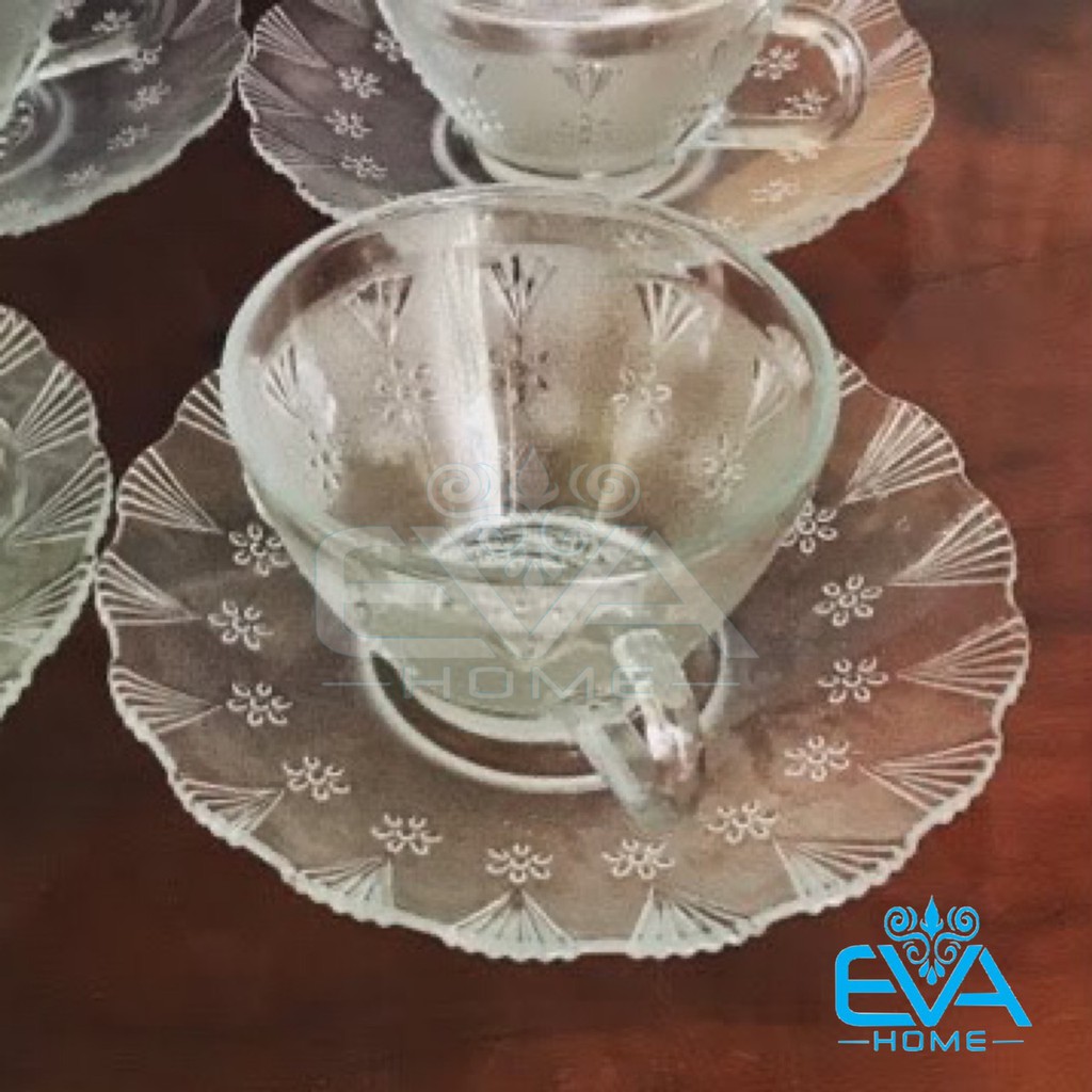 Bộ 6 Tách 6 Đĩa Thuỷ Tinh Mờ Hoa Văn Sang Trọng SK M3013