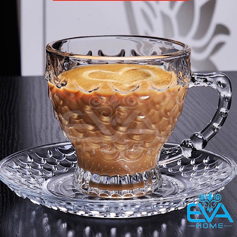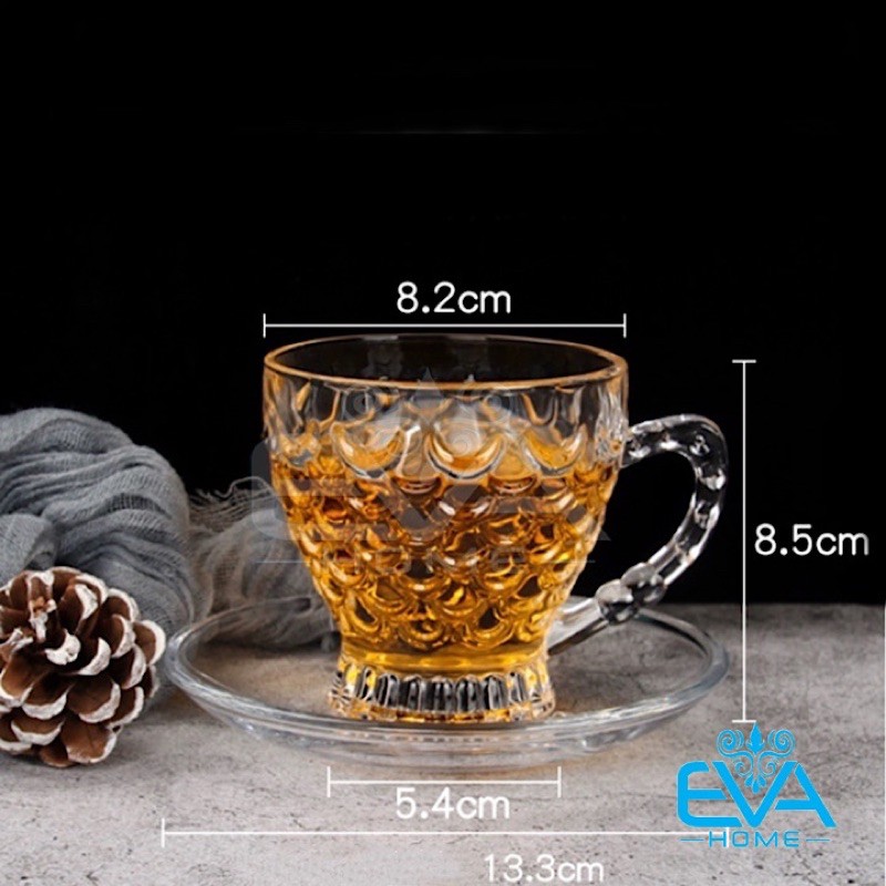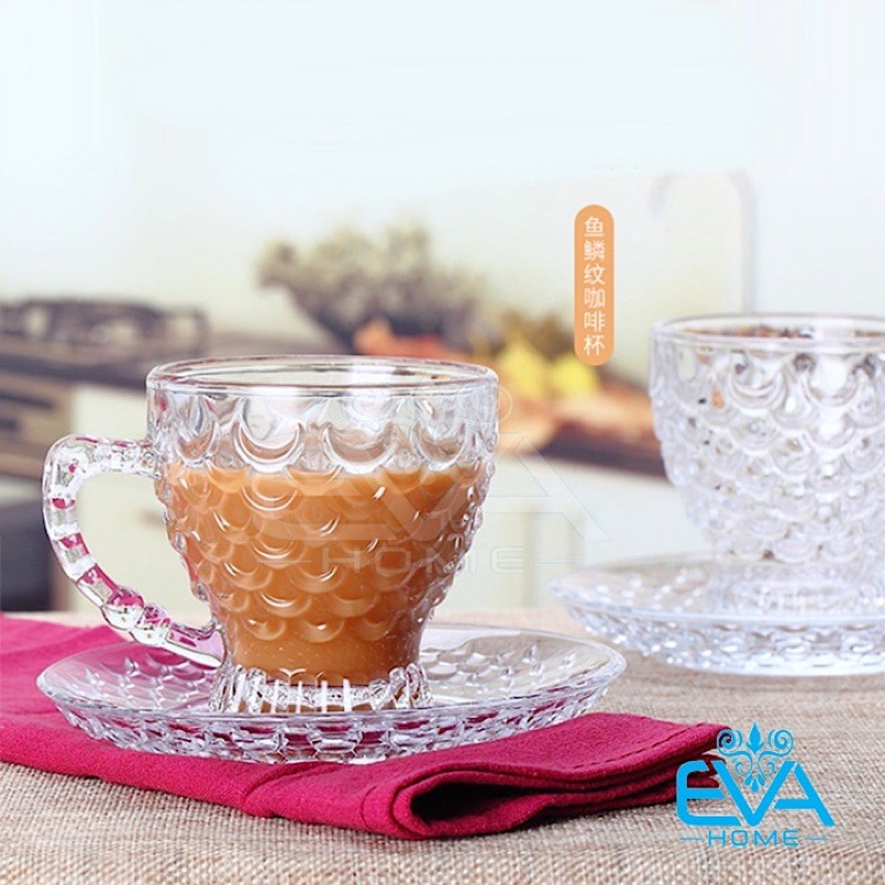 Bộ 6 Tách Thuỷ Tinh Hoạ Tiết Vẩy Cá Fish Scale Kèm 6 Đĩa Thuỷ Tinh Cao Cấp M3283