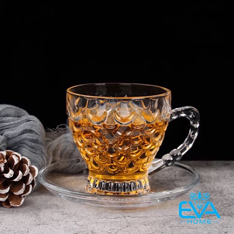 - Công Dụng : Bộ tách trà thuỷ tinh Trong suốt sáng trọng nên Màu sắc của nước trà, cánh trà, hoa trà hay lớp sương khói mờ ảo cũng được thể hiện toàn bộ bên trong lớp thủy tinh trong suốt, mang lại một cảm quan duy mĩ, cảm giác thư thái cho việc thưởng trà. hoạ tiết vẩy cá và quai cầm trạm khắc chống trượt và làm cho tách trà thêm sang trọng và bắt mắt . Bộ ly kèm theo dĩa đựng chống trượt và làm cho tách trà thêm sang trọng và dễ dàng khi thưởng thức