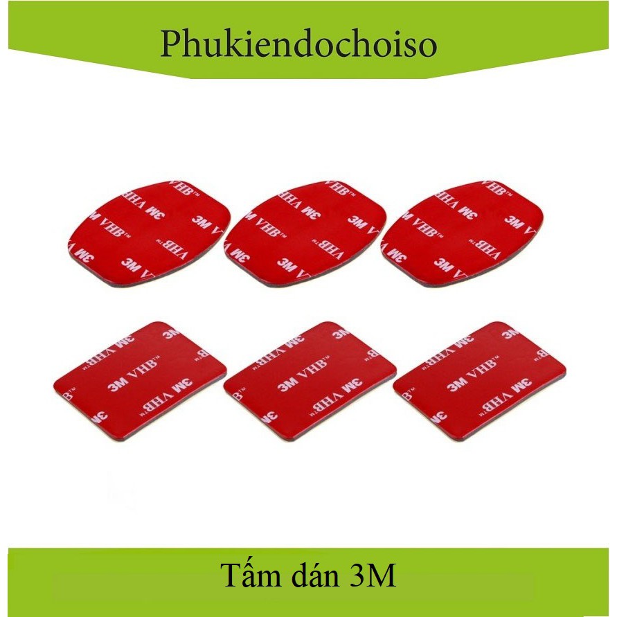Miếng dán 3M cho các máy camera hành động, Bộ có 6 miếng, 3 bầu và 3 miếng vuông. Miếng vuông dùng kết hợp với đế nhựa cong dán lên mũ bảo hiểm. Miếng bàu dùng dán miếng mount thảng lên đầu xe máy, mui xe ô tô …