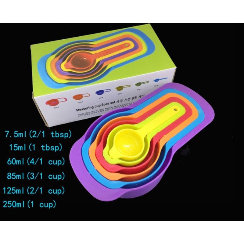 Bộ 6 thìa đong sắc màu (cup, tsp, ml)