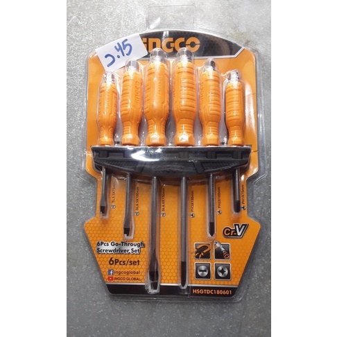 Bộ 6 Tua vít loại đóng xuyên INGCO HSGTDC180601Bộ 6 tua vít đóng xuyên Chất liệu thép: 40Cr. Gồm 1pcs SL5.5*75mm - 1pcs SL6.5*100mm