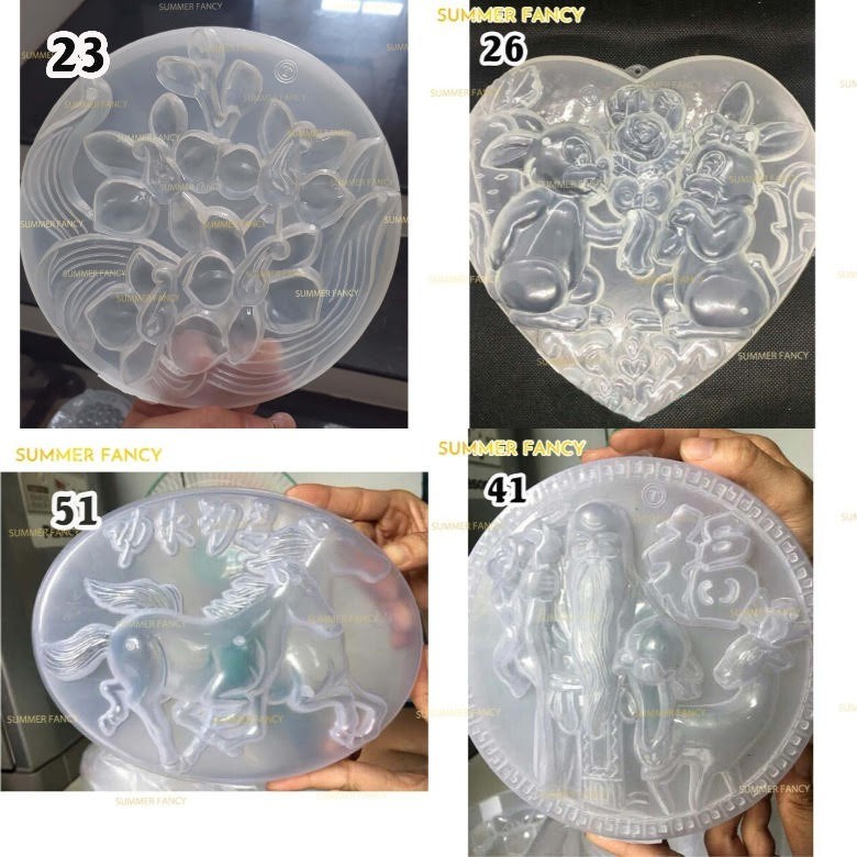 (60 mẫu) Khuôn rau câu 20cm , thạch nhiều mẫu trung thu nhựa Happy cá chép hòa hồng - plastic round heart cake mold