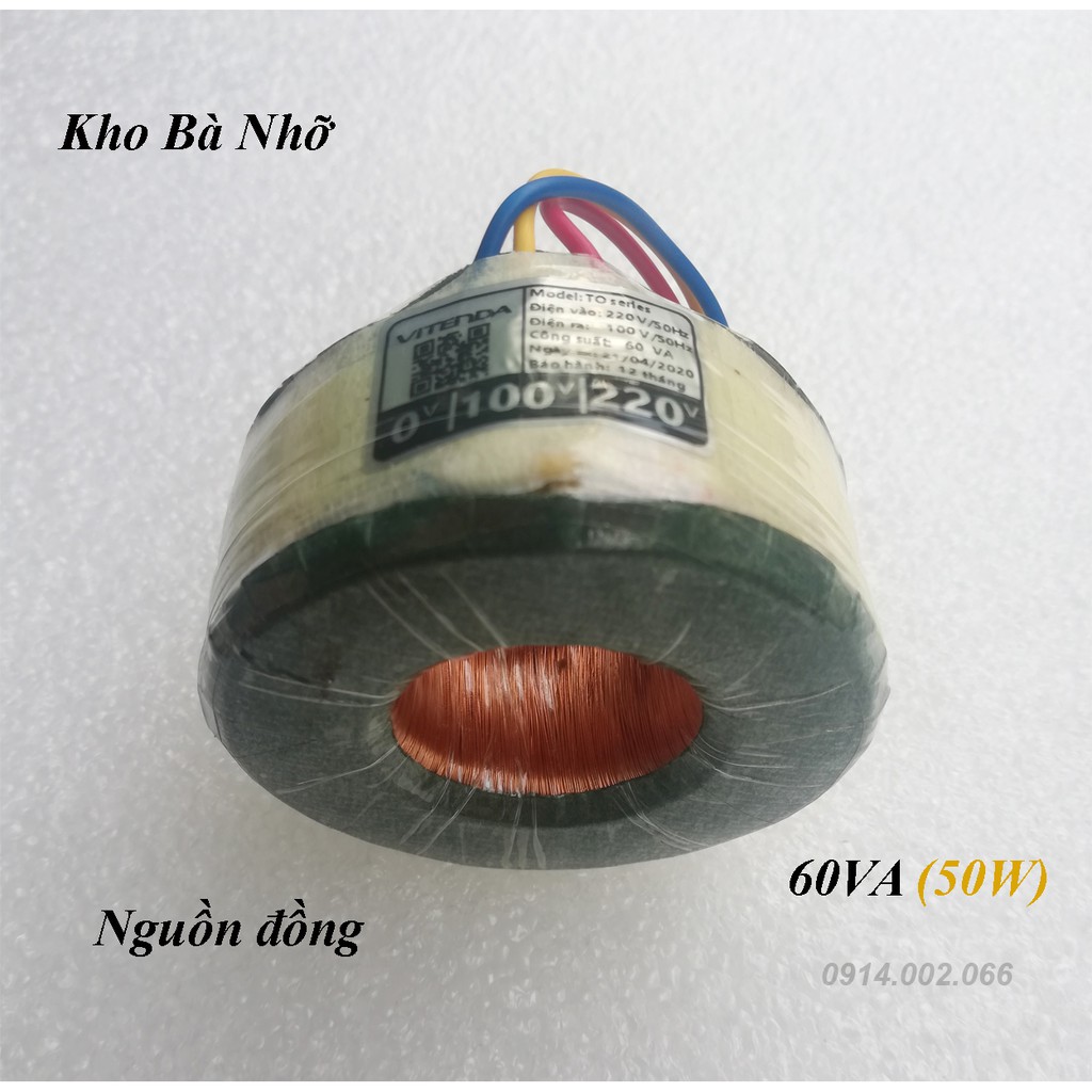 Giới thiệu (60VA). Bộ đổi nguồn 220V sang 110V 60VA(50W) gắn trong cho quạt Nhật, lọc khí,... điện 100V. Nguồn đồng xịn. Vitenda