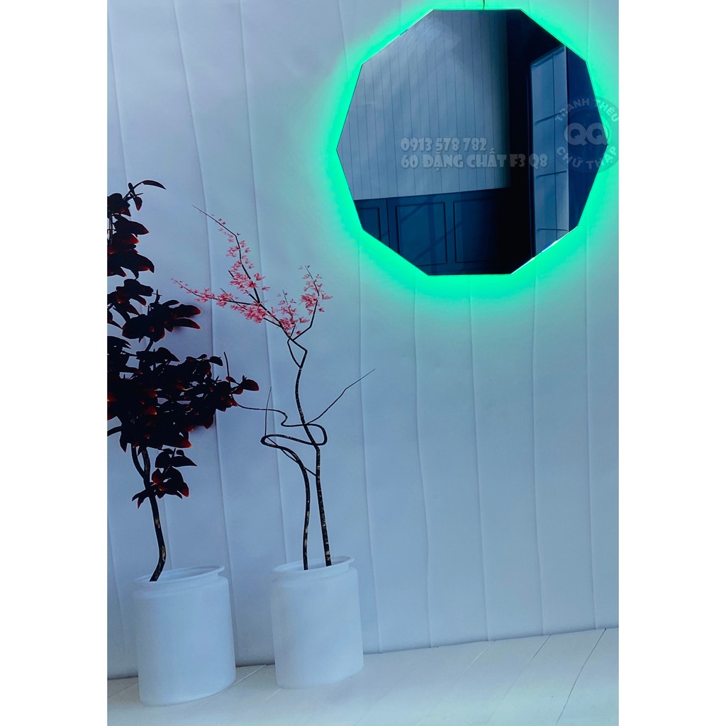 Giới thiệu 60x60cm Gương tròn treo tường vintage cổ điển đa giác 10 cạnh không viền